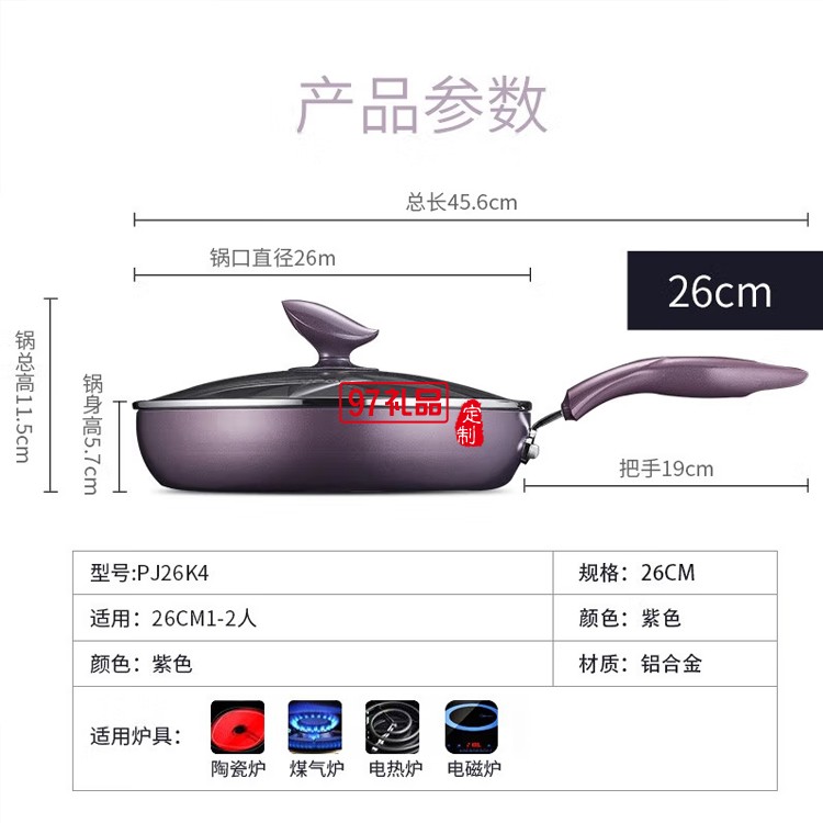 蘇泊爾26cm煎鍋不粘鍋電磁爐牛排鍋炒菜鍋PJ26K4定制公司廣告禮品