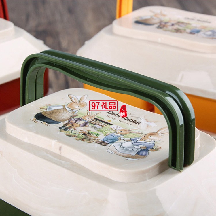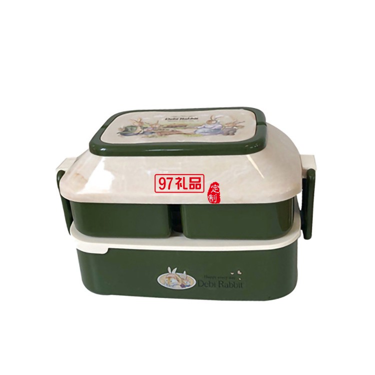 日式雙層卡通兔子塑料飯盒學生便當飯盒 微波爐手提分格便當盒