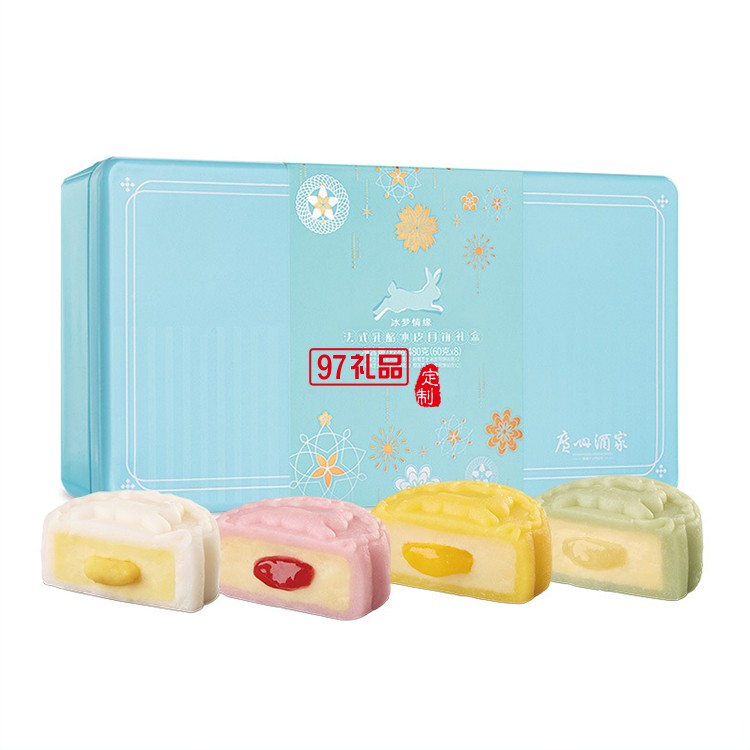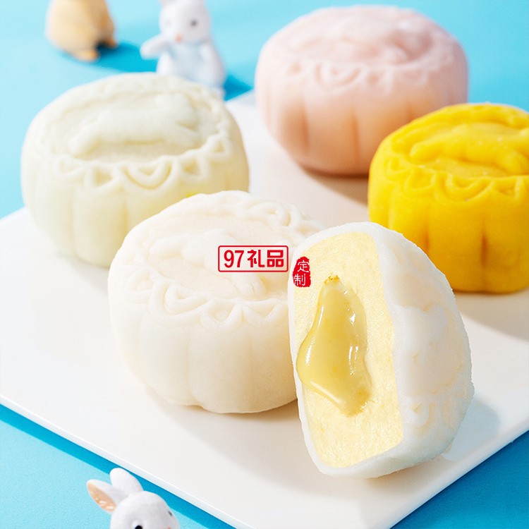 內(nèi)容物:原味芝士冰皮月餅:60gx2 榴蓮芝士冰皮月餅:60gx2