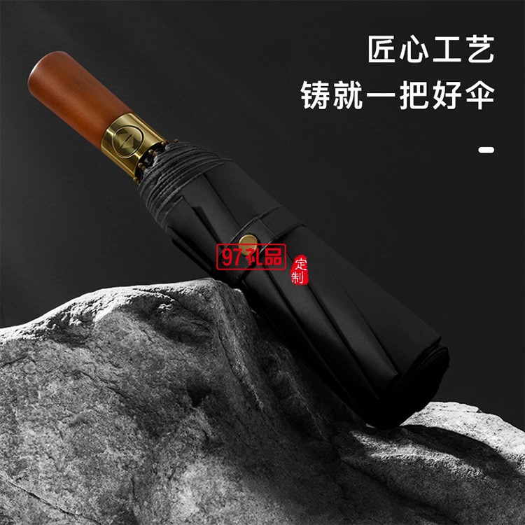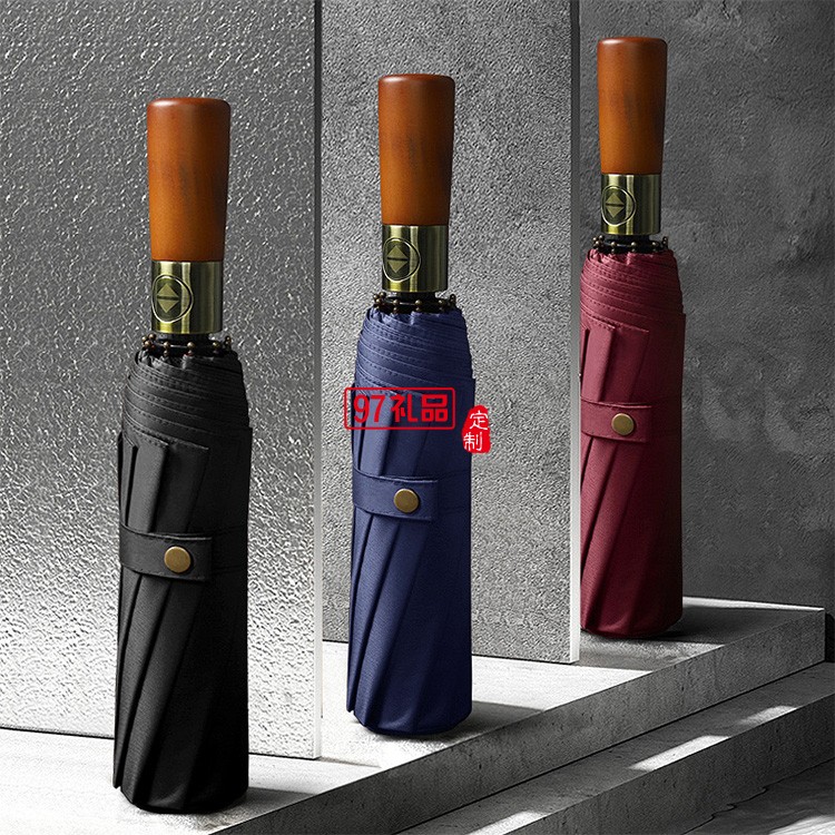 古銅拉絲三折10骨黑膠自動晴雨傘定 制折疊商務廣告禮品雨傘批發