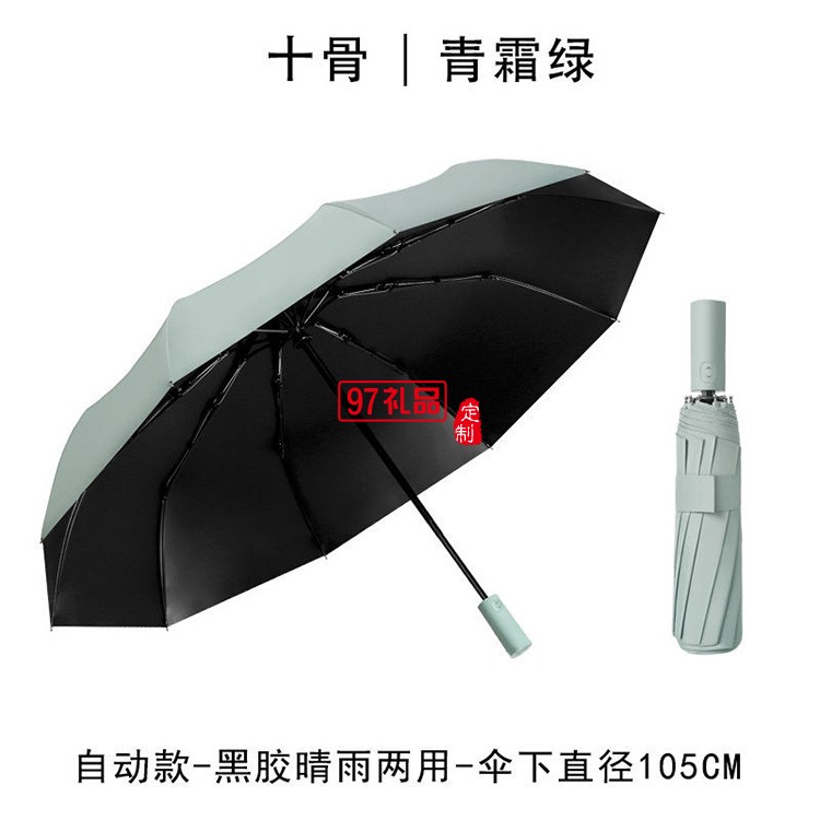 新款12骨黑膠全自動雨傘折疊商務晴雨傘三折遮陽防嗮太陽傘廣告