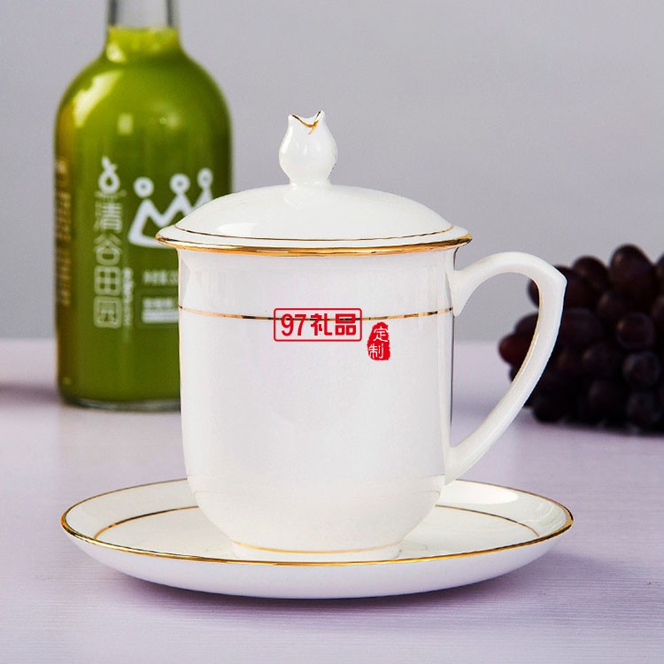 景德鎮骨瓷杯陶瓷茶具酒店會議杯定制家用帶蓋水杯描金邊茶杯