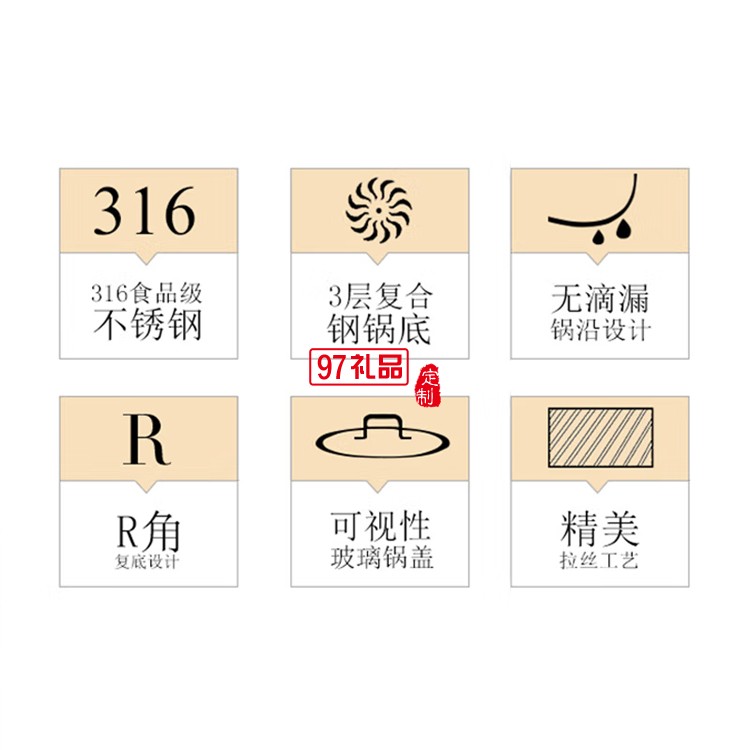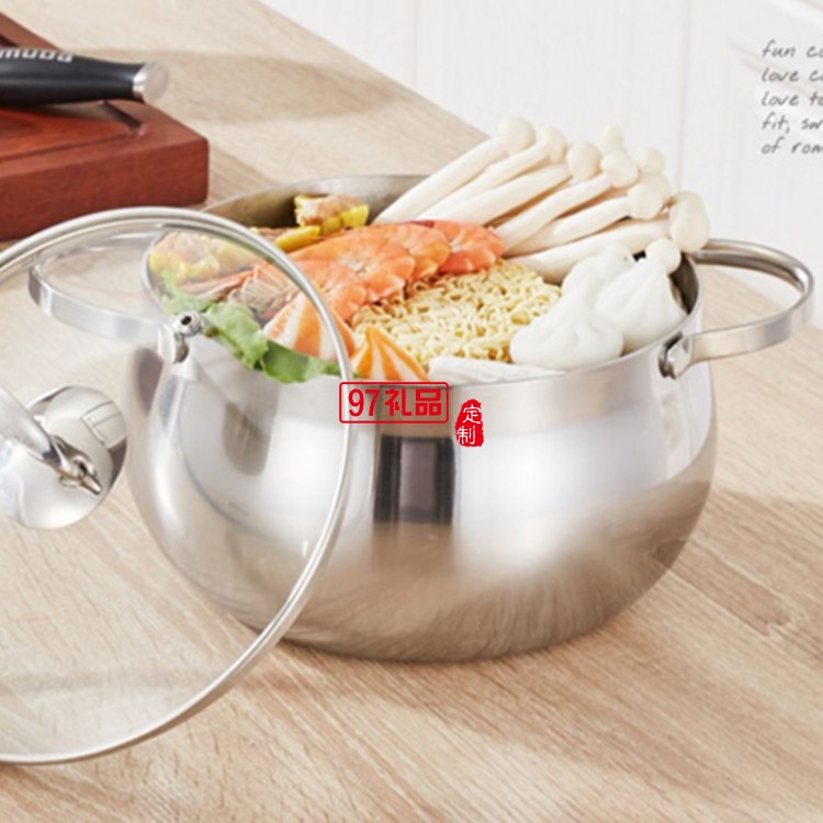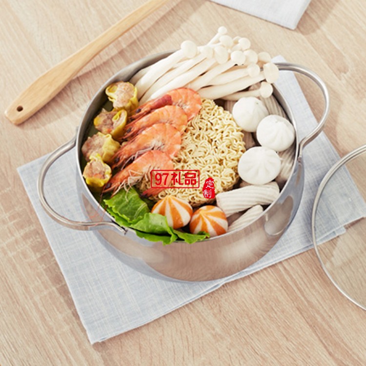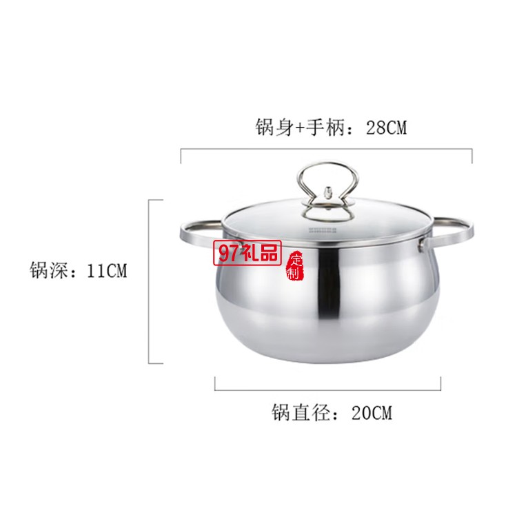 歐美達316不銹鋼湯鍋加高加厚不粘鍋具雙耳燉鍋定制公司廣告禮品