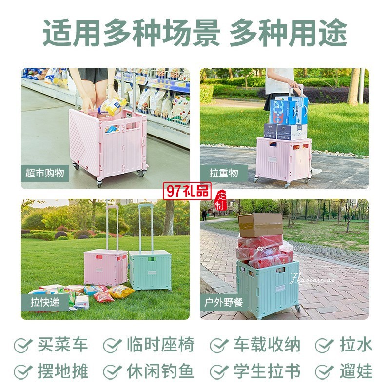 便攜折疊購物車360度萬向輪塑料拉桿車小推車定制公司廣告禮品