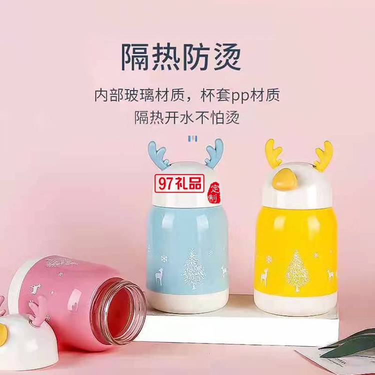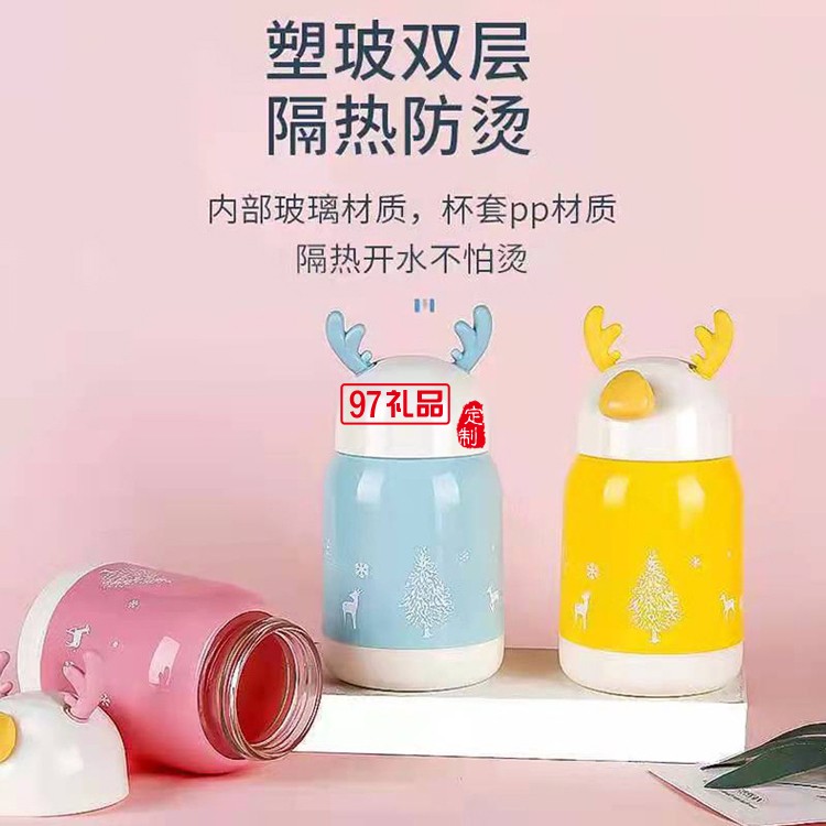 可愛卡通靈鹿杯玻璃學生杯子便攜式玻塑杯