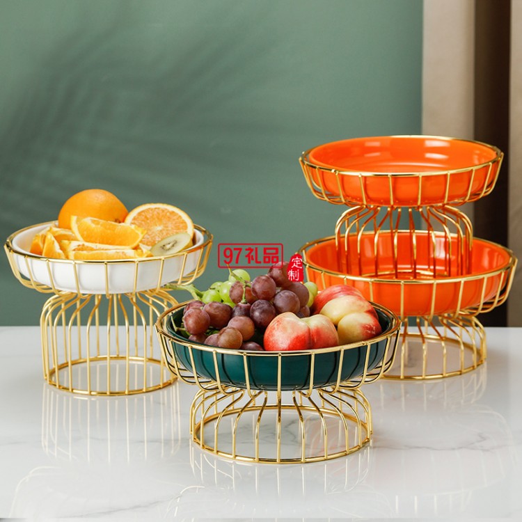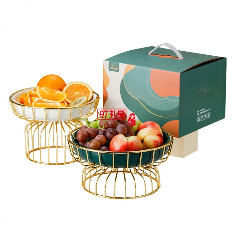 ins水果盤鐵藝架+陶瓷甜品盤糖果盤網(wǎng)紅高腳果盤禮盒套裝伴手禮