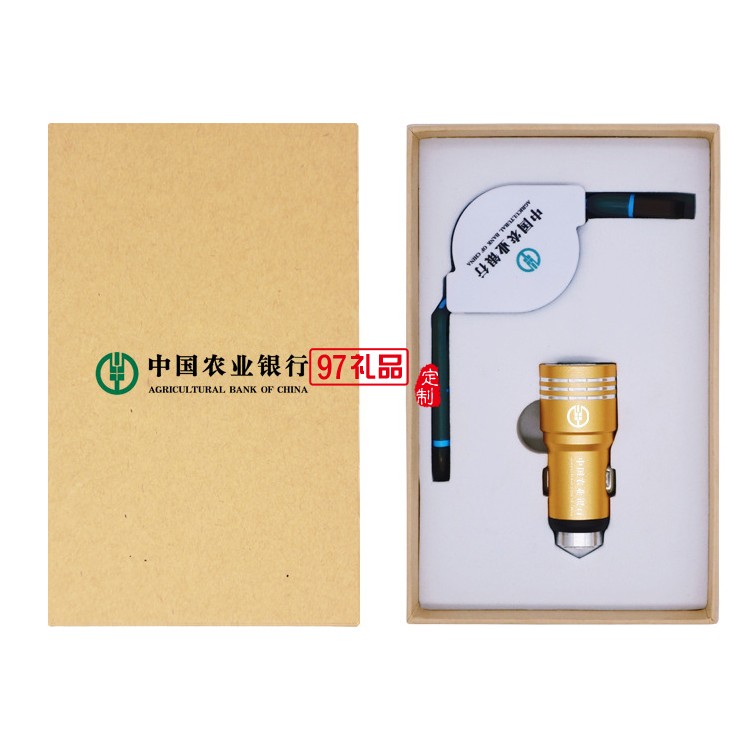 汽車用品4s店保險定制logo 數據線+安全錘套裝