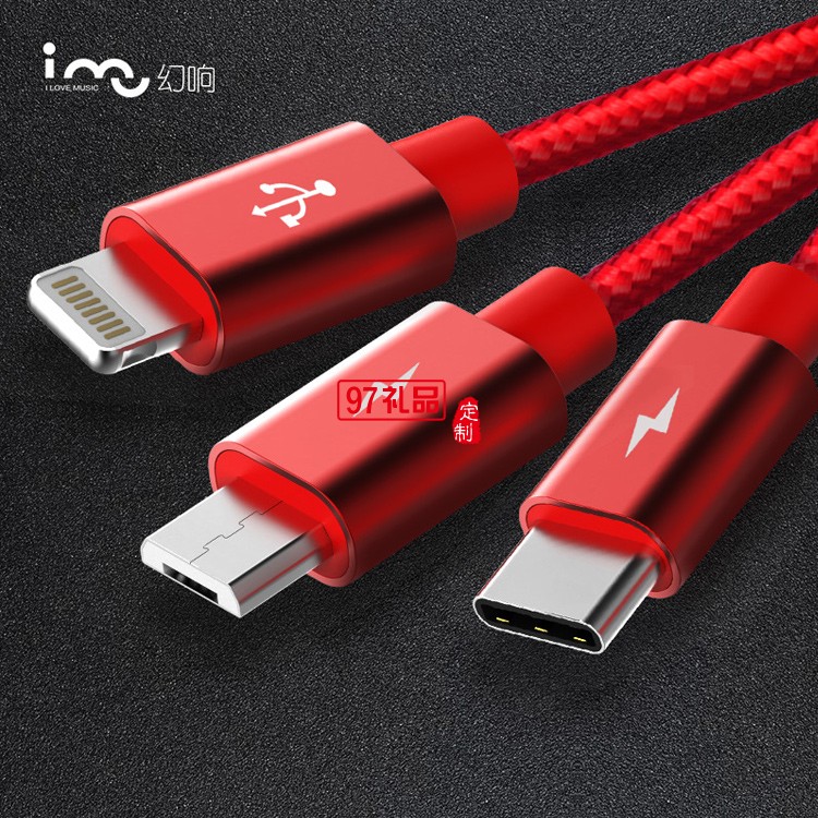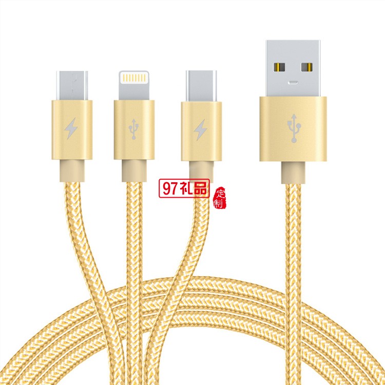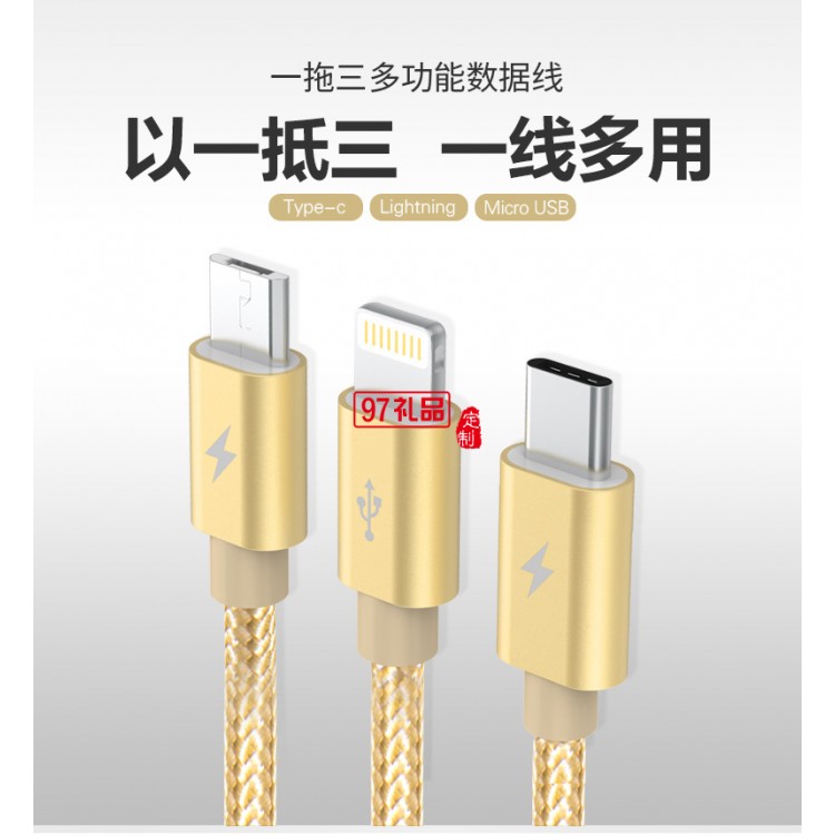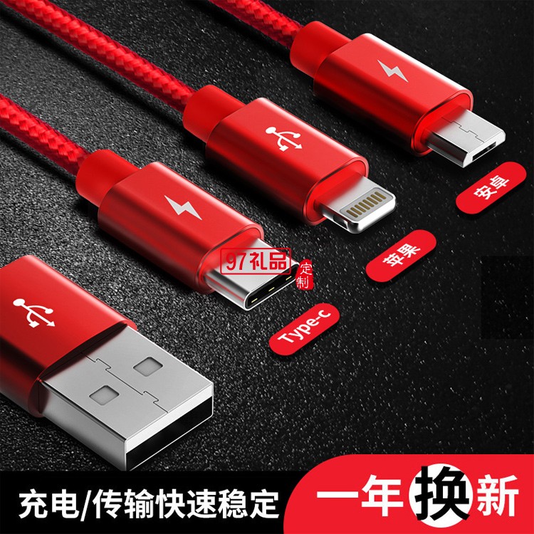 一拖三數據線伸縮充電線快充三頭適用蘋果華為活動小禮品定制