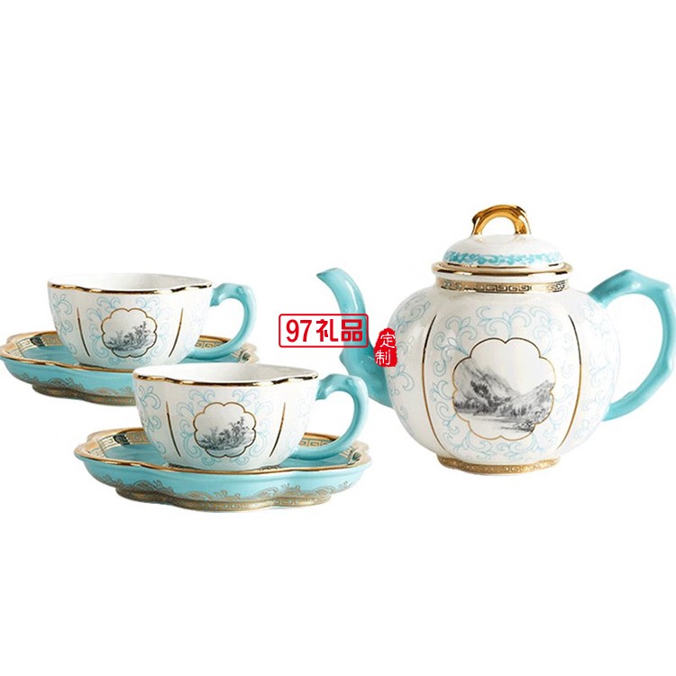 絲路水韻藍10頭大金枝茶具