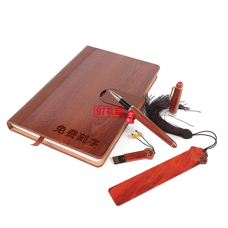 紅木筆記本簽字筆U盤書簽禮品套裝