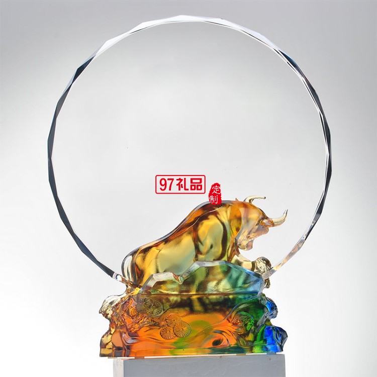 生肖牛年原創水晶琉璃獎牌