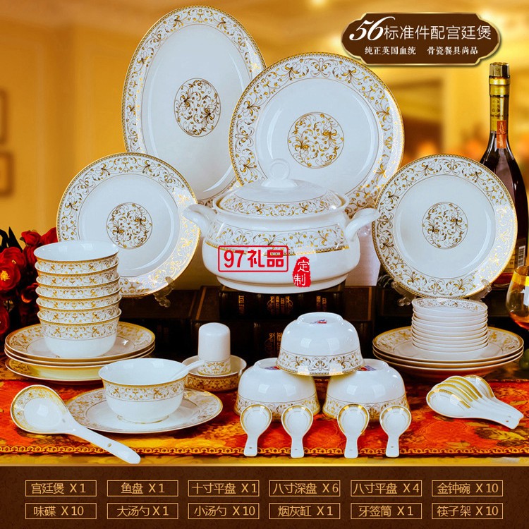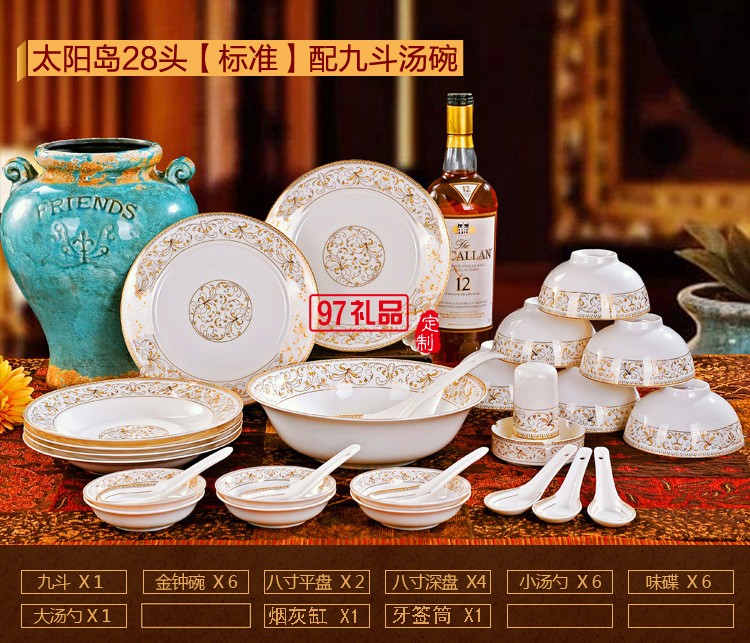 28頭及56頭骨瓷餐具套裝太陽島碗盤碟