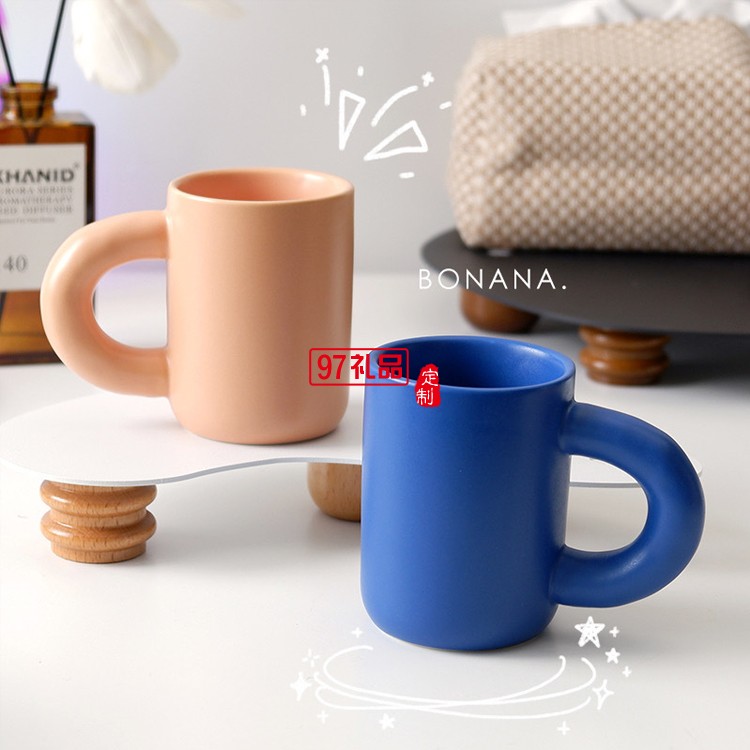 跨鏡專供通心粉馬克杯陶瓷杯胖把手牛奶咖啡杯水杯餐廳創意彩色杯