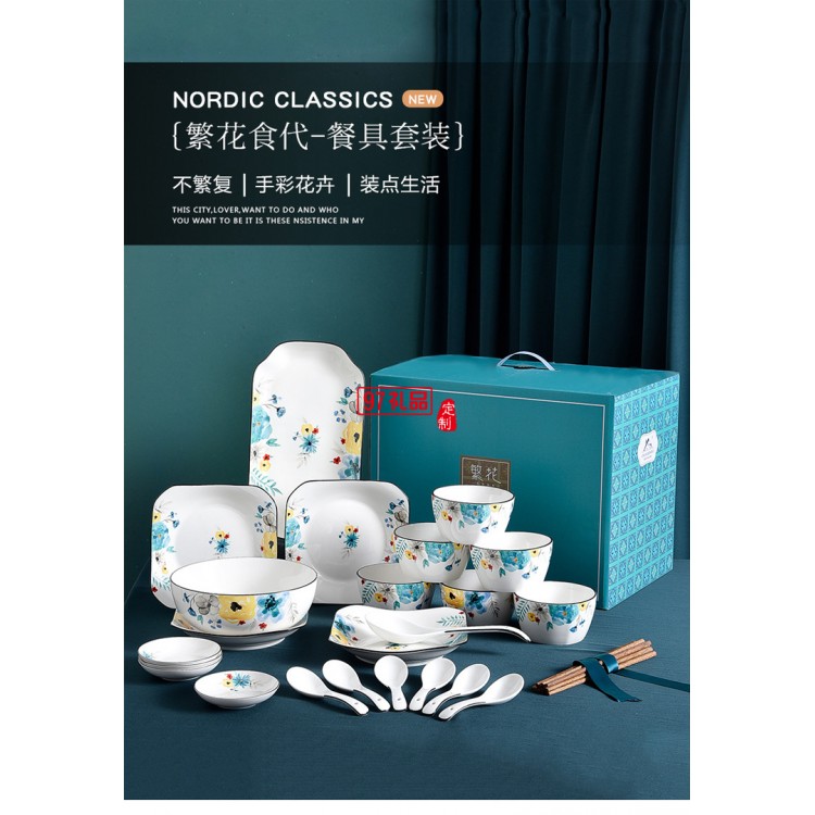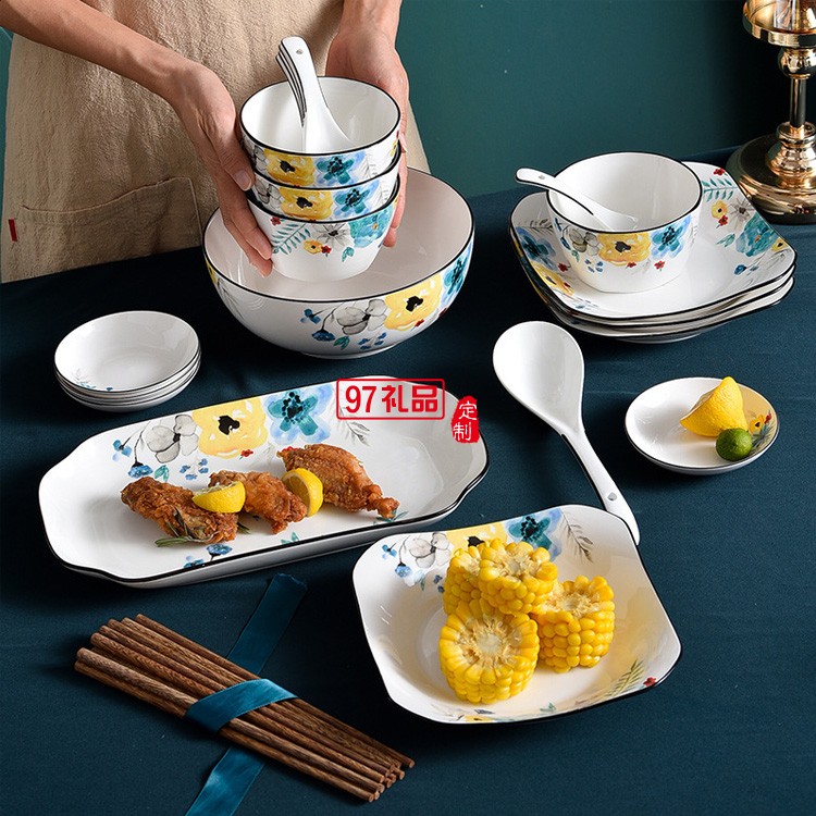 創意陶瓷餐具碗盤碟套裝家用餐盤米飯碗湯碗組合活動禮品