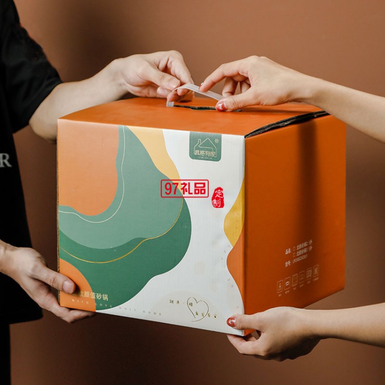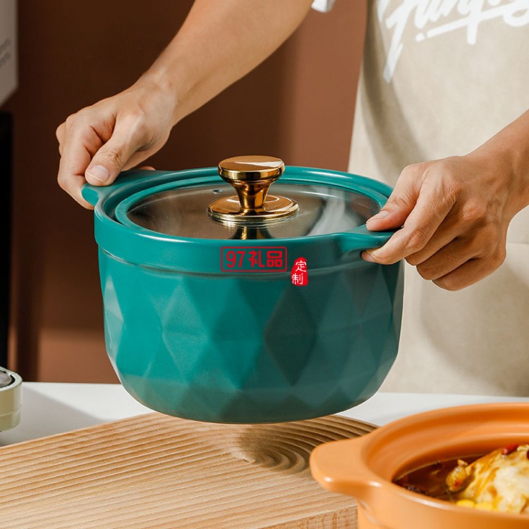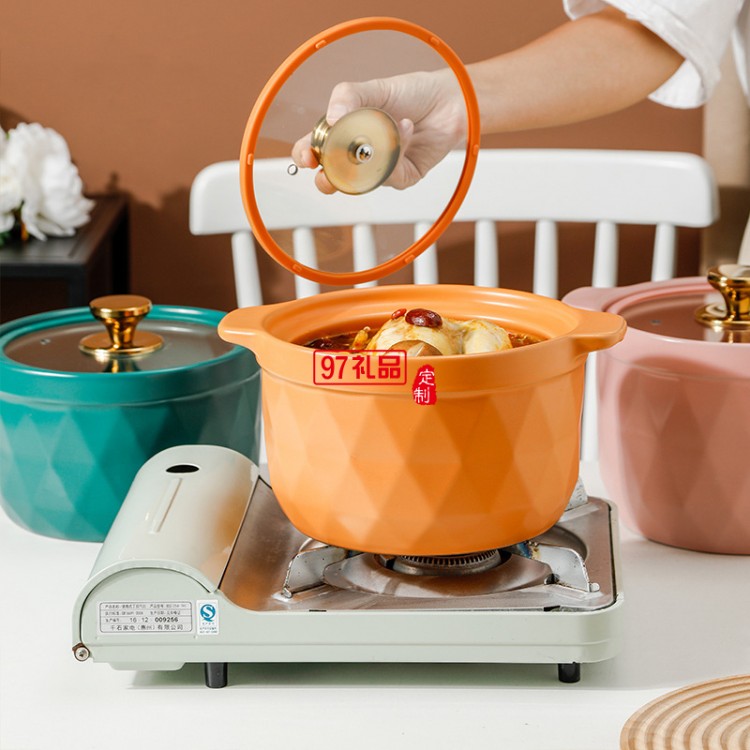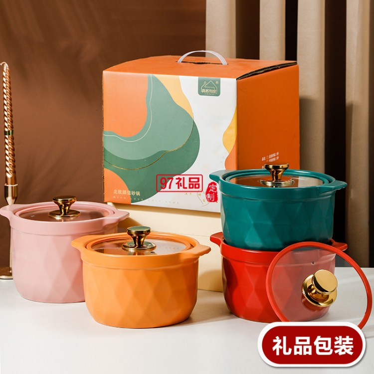 2.5L網紅陶瓷砂鍋禮品套裝帶玻璃蓋明火燉鍋彩盒耐高溫湯鍋伴手禮