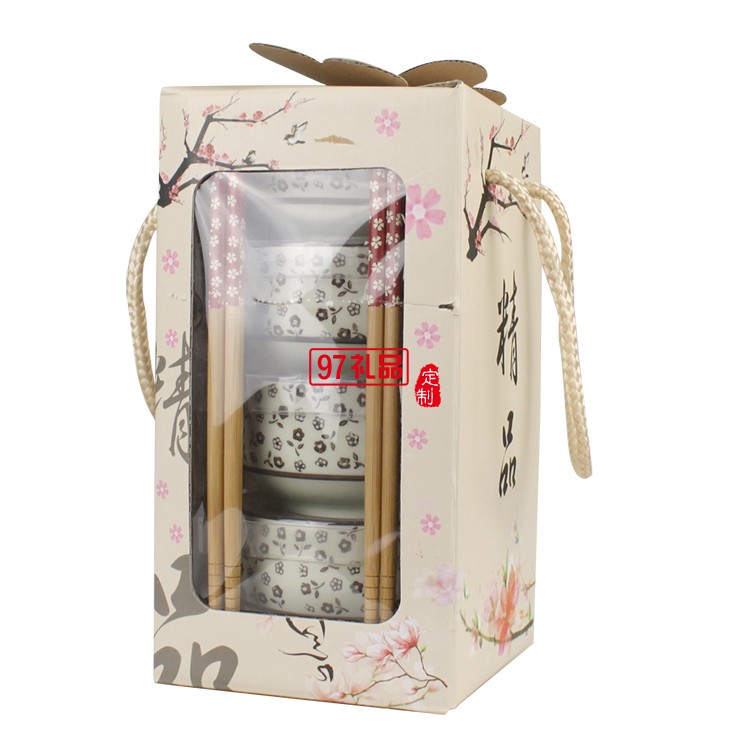 陶瓷豎款4碗筷套裝商務活動禮品logo定制結婚回禮公司活動禮品