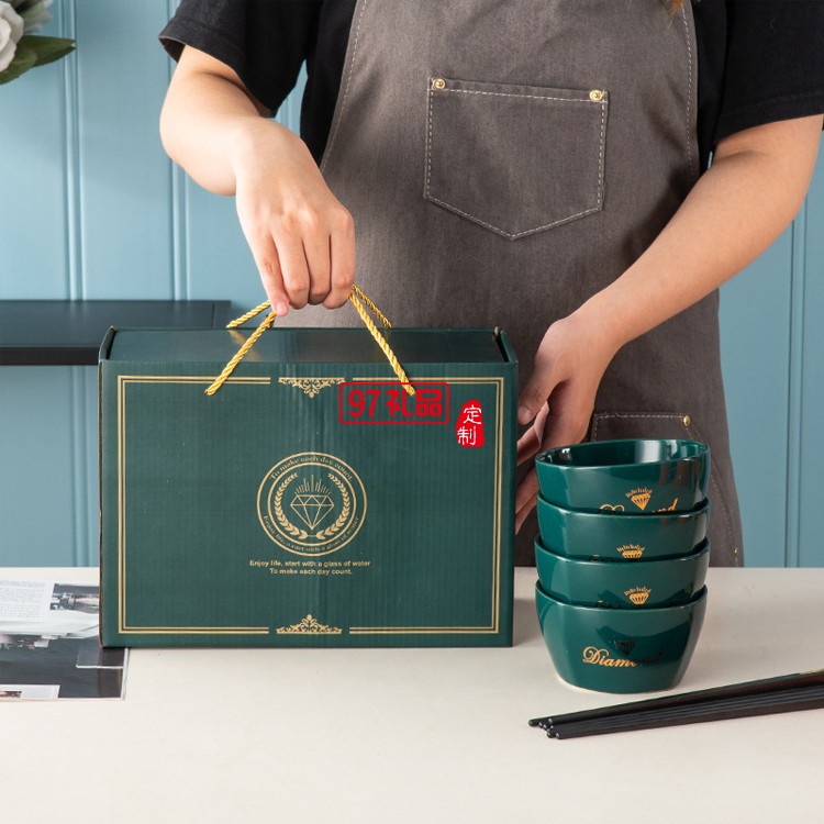國潮風開業活動禮品碗筷套裝方碗陶瓷餐具禮盒套裝碗