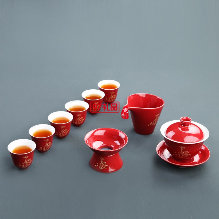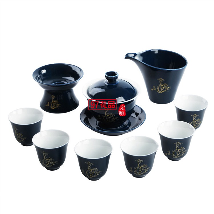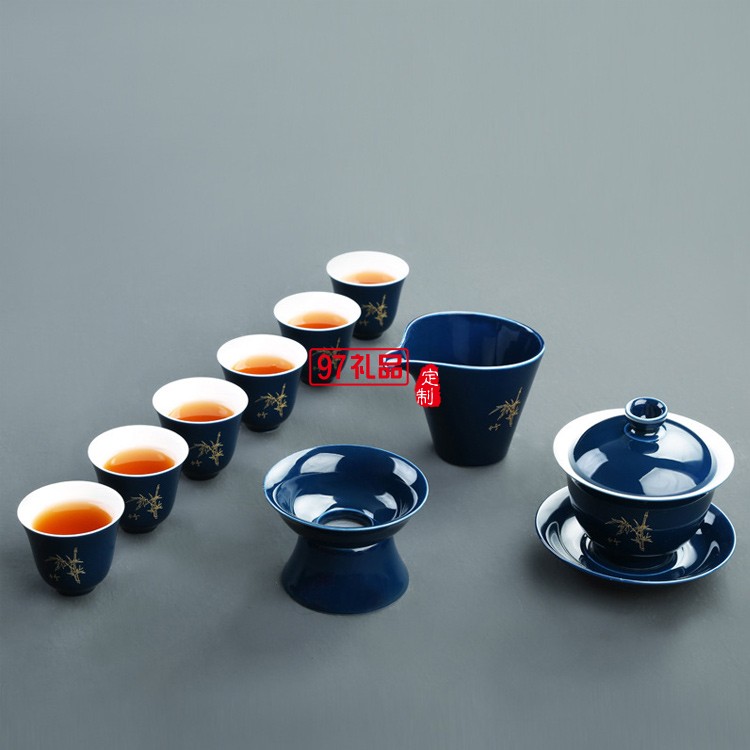 陶瓷茶具套裝霽藍激光茶具