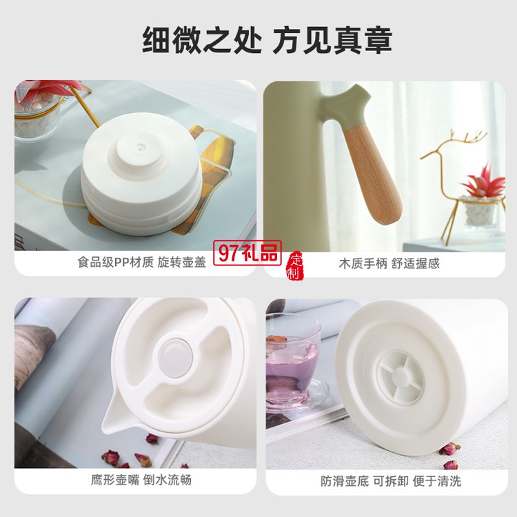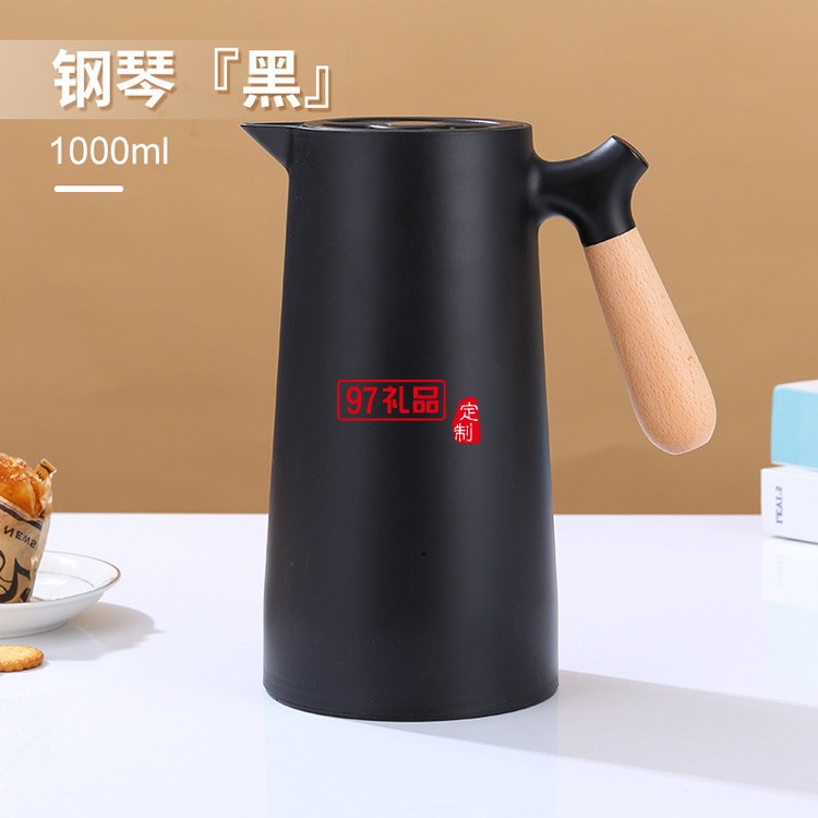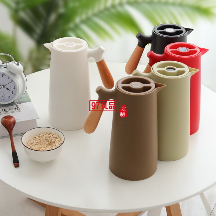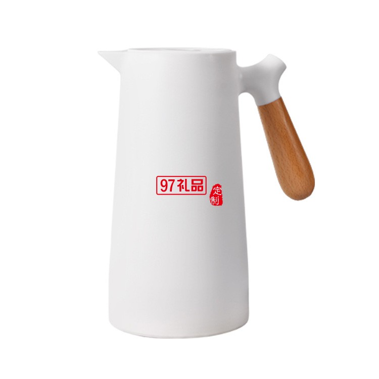 保溫水壺木手柄簡約風咖啡壺家用時尚保溫瓶定制公司廣告禮品