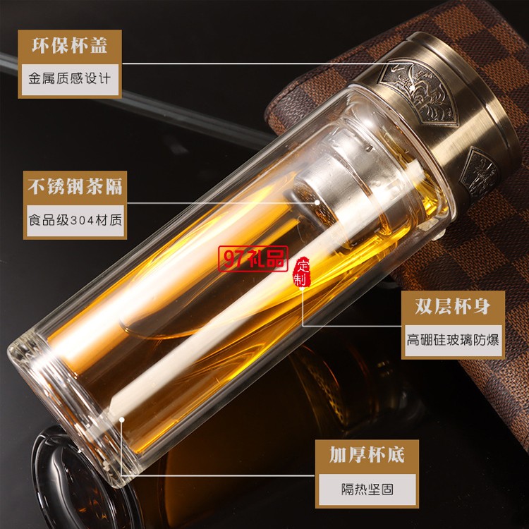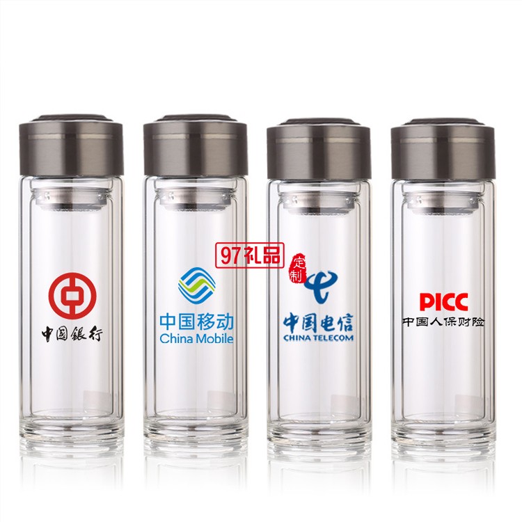 雙層玻璃杯定制logo 透明高硼硅廣告杯