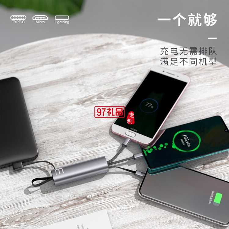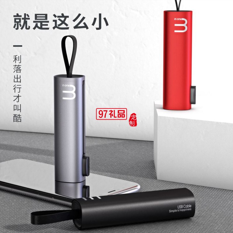 伸縮收納三合一數據快充電線公司年展會定制logo刻字定制公司廣告禮品