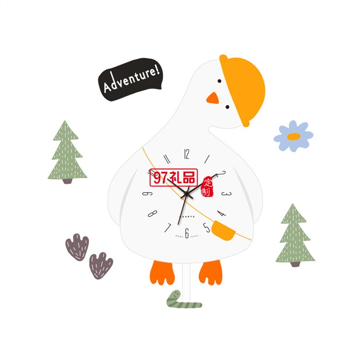 創(chuàng)意卡通搖擺鐘表 歪頭鵝掛鐘兒童房裝飾