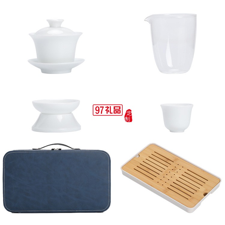 白瓷茶藝教學功夫茶具套裝家用便攜包旅行德化陶瓷蓋碗泡茶具