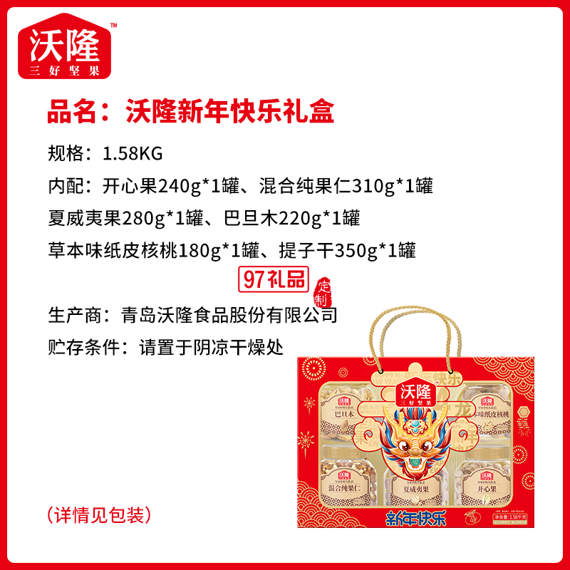單件凈含量:1580g品名:沃隆堅果禮生產許可證編號:SC11737021401064