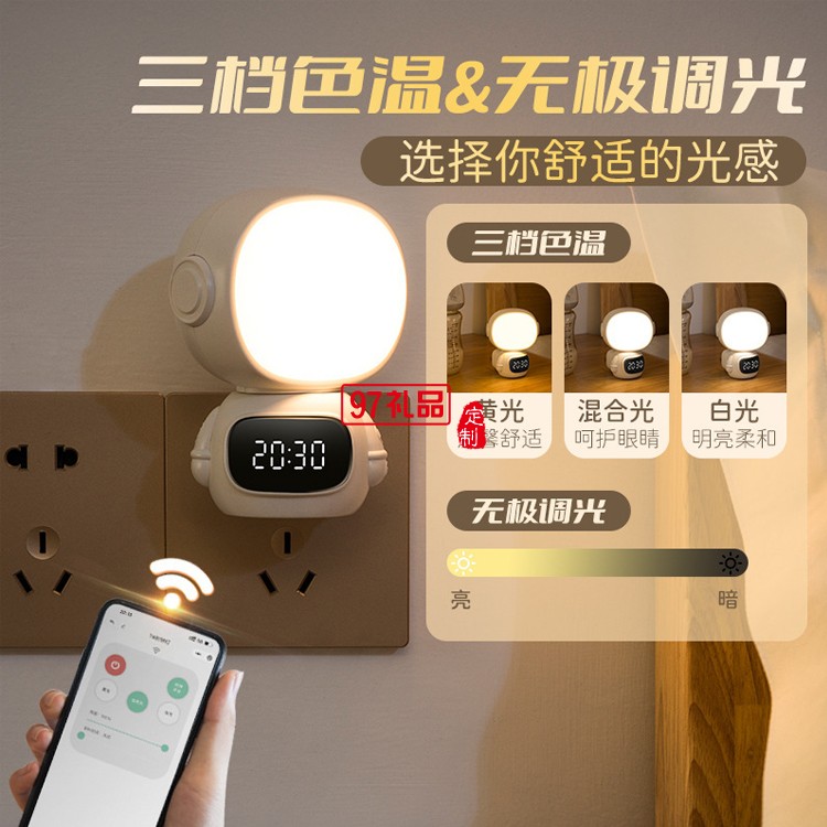 創意 小夜燈 擺件 充插兩用 便攜 照明 時鐘小程序宇航員小夜燈
