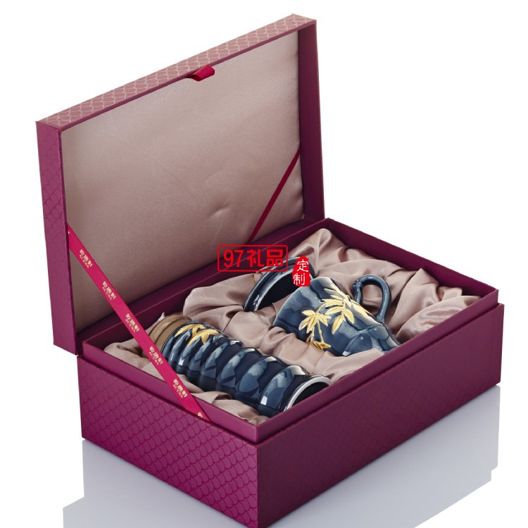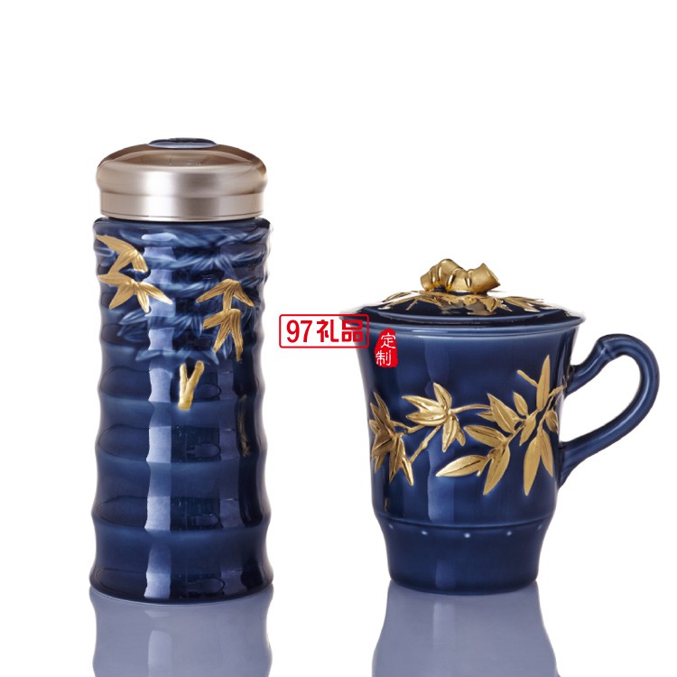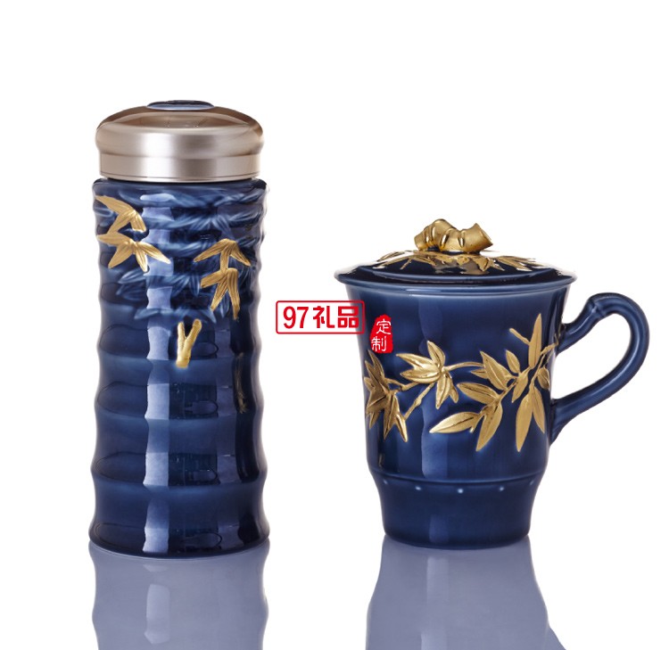 商務典范 大竹節隨身杯&高杯禮盒 350ml雙層/340ml 鎏金寶石