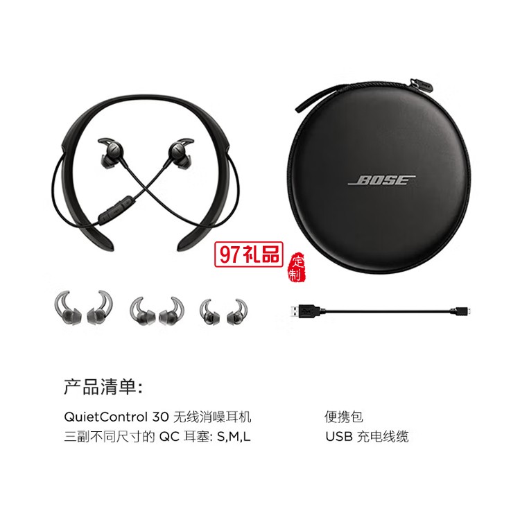 無線耳機 QC30耳塞式藍牙降噪耳麥 頸掛式定制公司廣告禮品