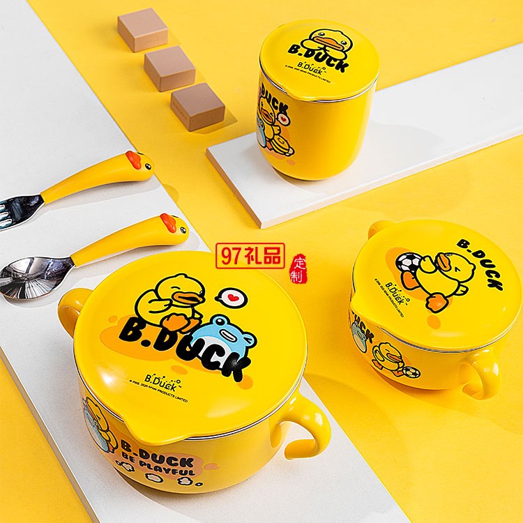 face小黃鴨寶寶輔食碗 嬰兒專用碗寶寶防摔吸盤輔食碗316不銹鋼碗