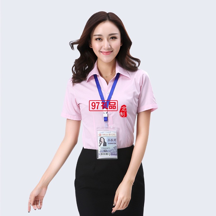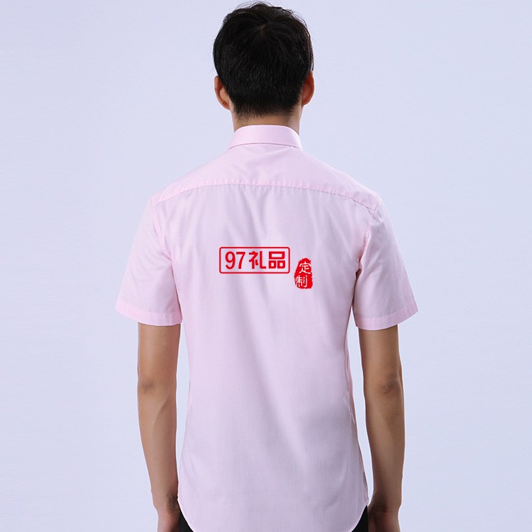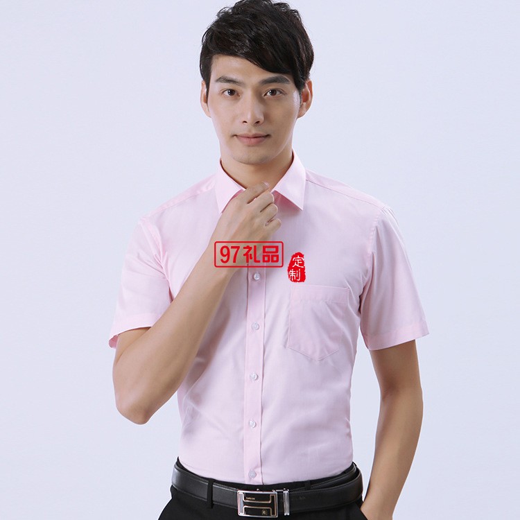 夏季新款粉色男式短袖襯衫 辦公室職業裝男士商務襯衫