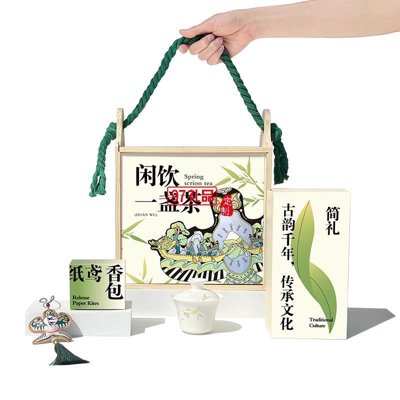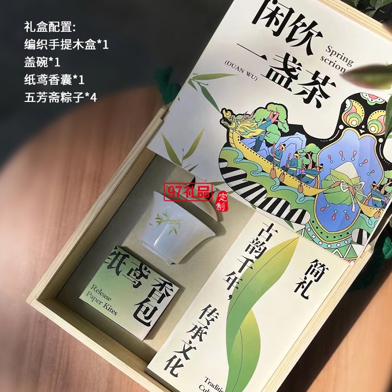 閑飲一盞茶 端午編織手提木盒蓋碗紙鳶香囊粽子