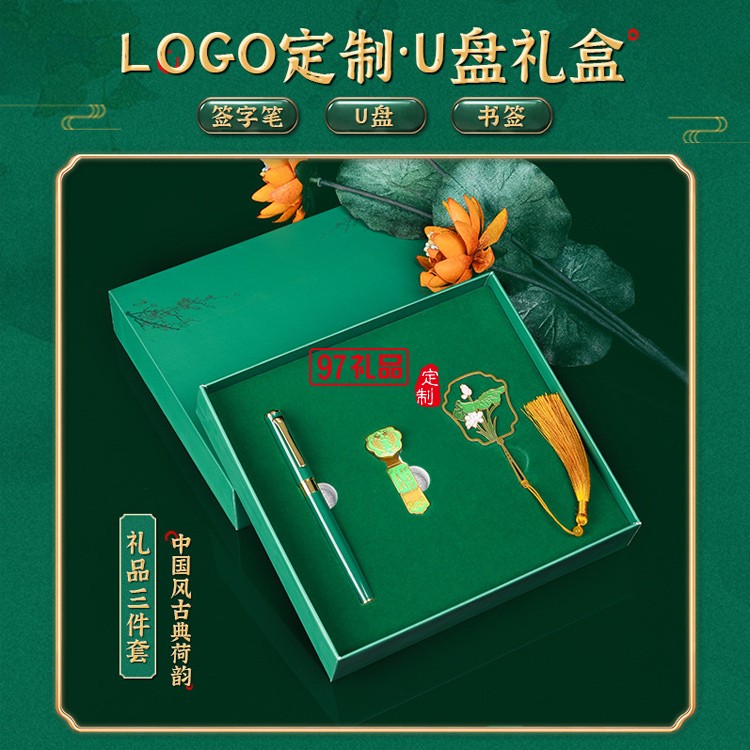 中國風禮品U盤書簽金屬本筆記本簽字筆禮品套裝廣告禮品定制