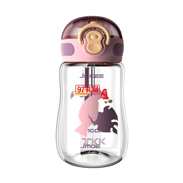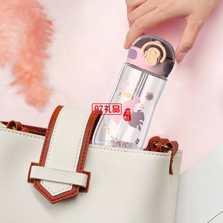 TKK夏季兒童吸管塑料杯小學(xué)生帶鎖扣抗摔便攜吸管杯禮品杯子定制