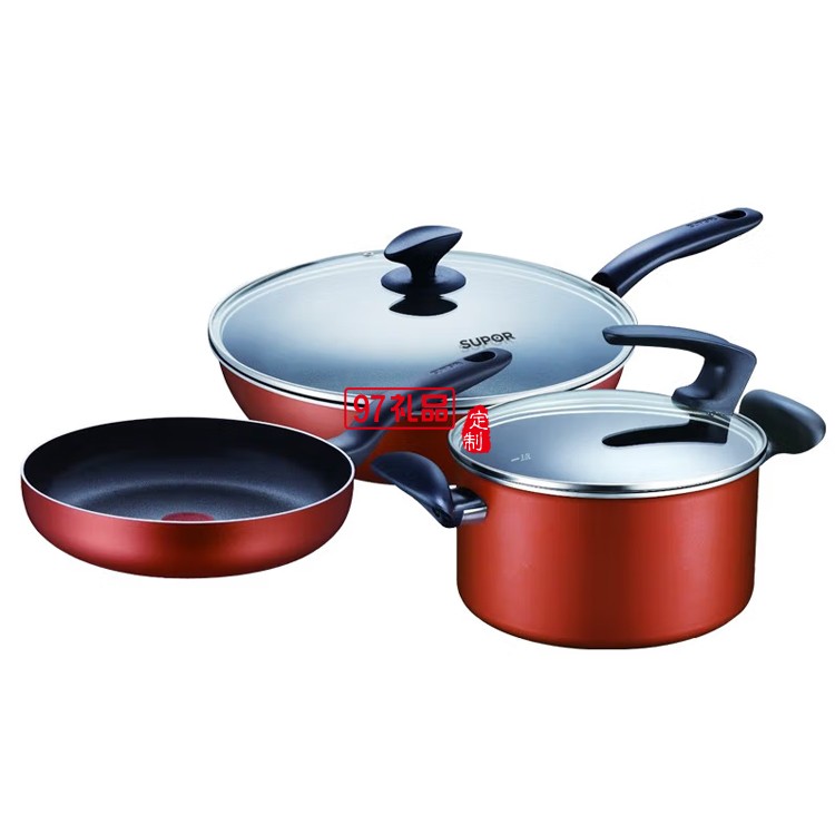 蘇泊爾不粘鍋多功能炒鍋煎鍋湯奶鍋三件套T1232T定制公司廣告禮品