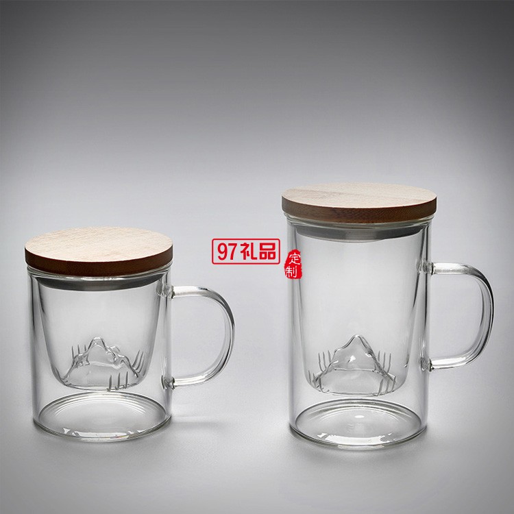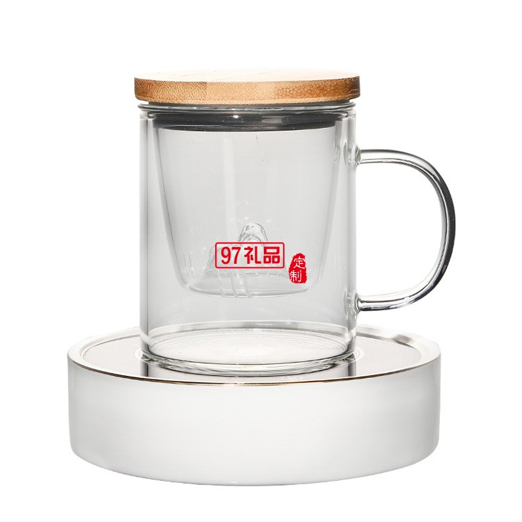 耐高溫玻璃茶杯三件套木蓋茶水分離茶道杯日式高硼硅帶過濾花茶杯