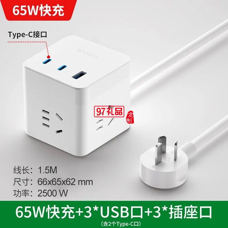 公牛PD快充魔方插座插線板插排接線板UU3653定制公司廣告禮品