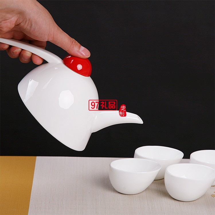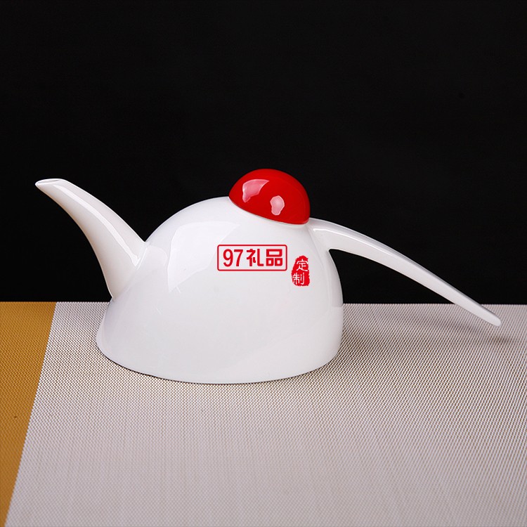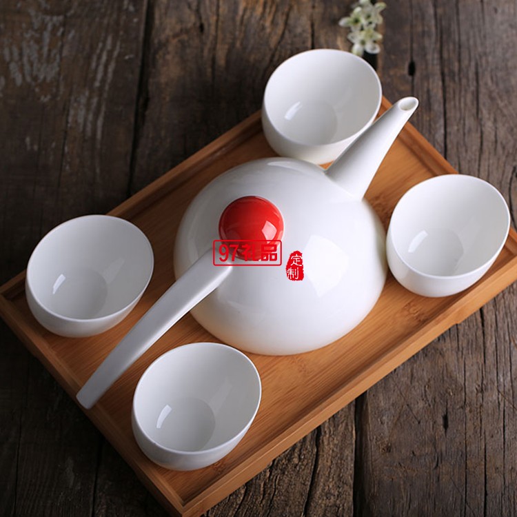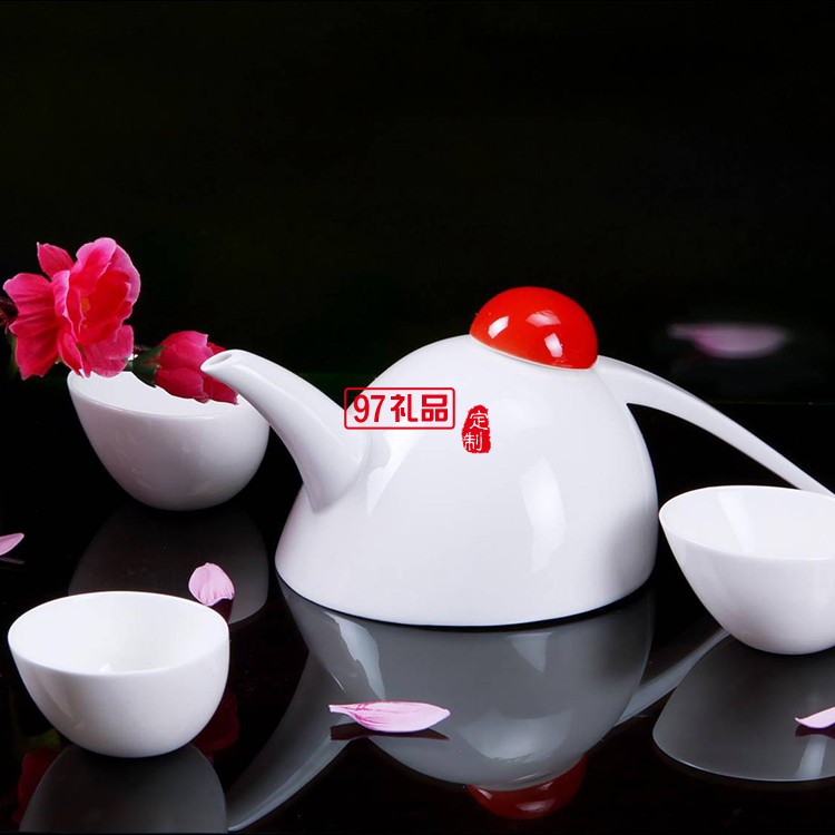 【推薦】:橢圓形的壺身加橢圓形的杯子,整體搭配協調,紅色的壺蓋是一大亮點,使整套茶具又上升了一個層次。
