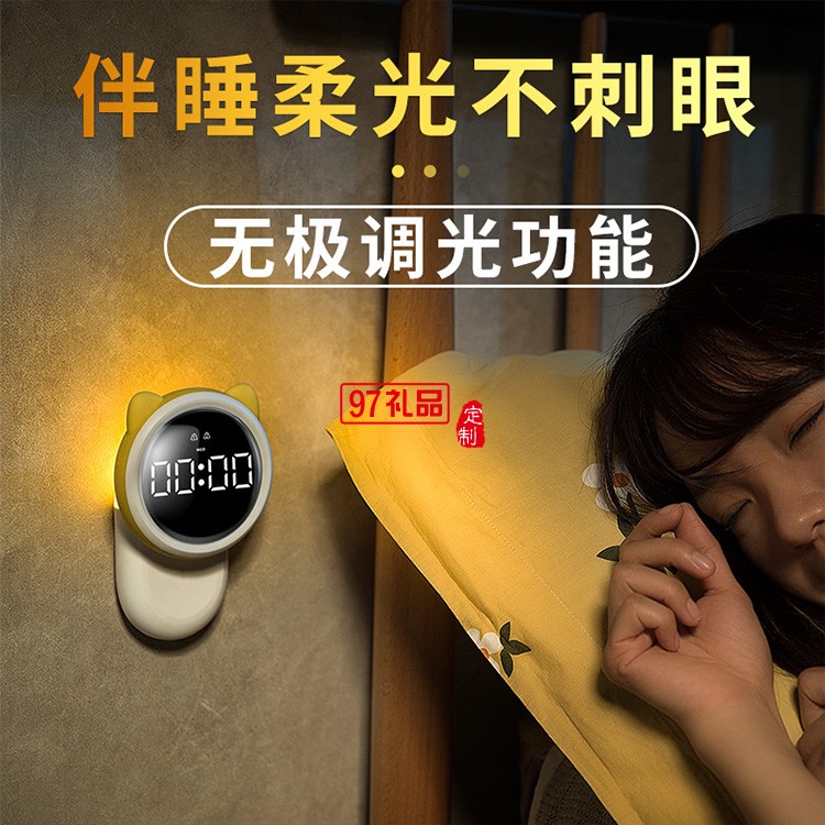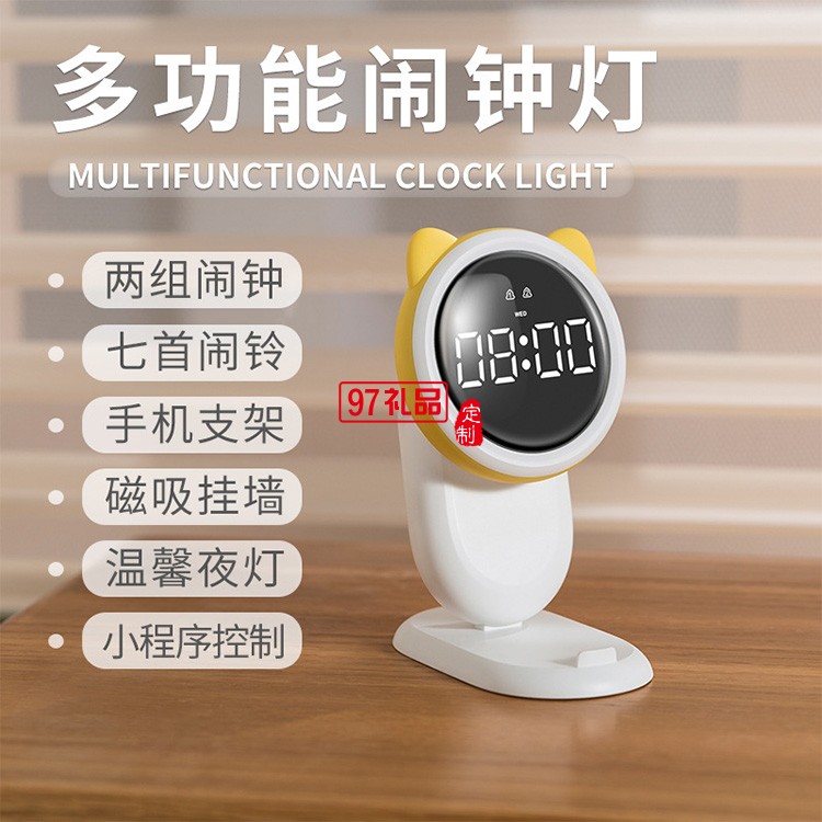 萌寵多功能鬧鐘燈LED數字鬧鐘定制公司廣告禮品