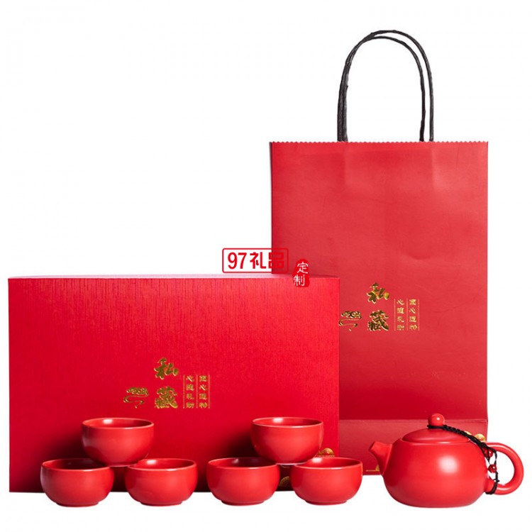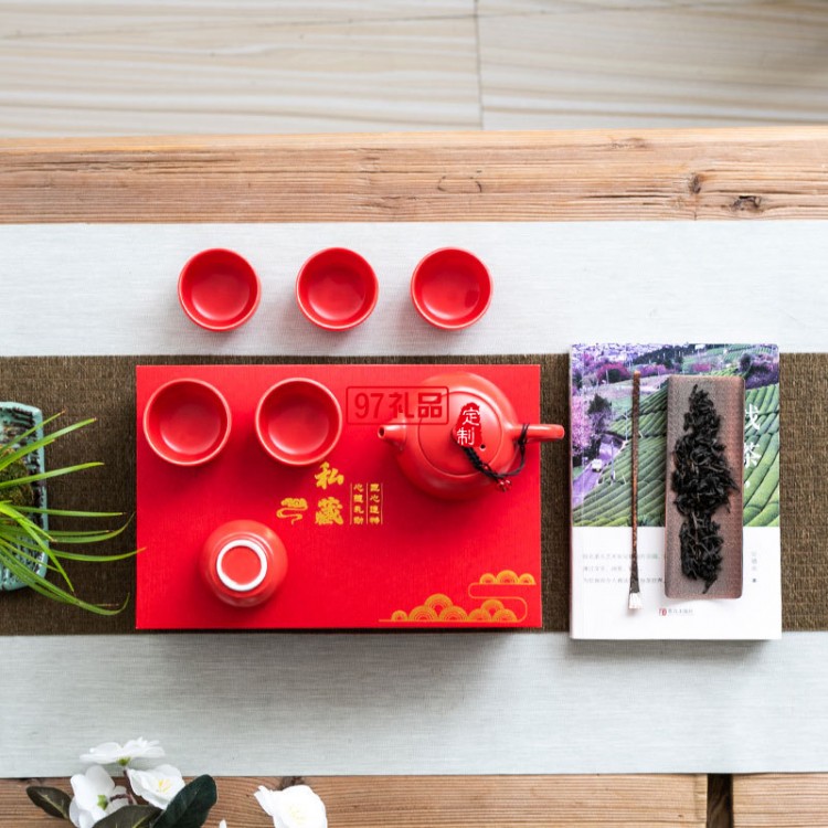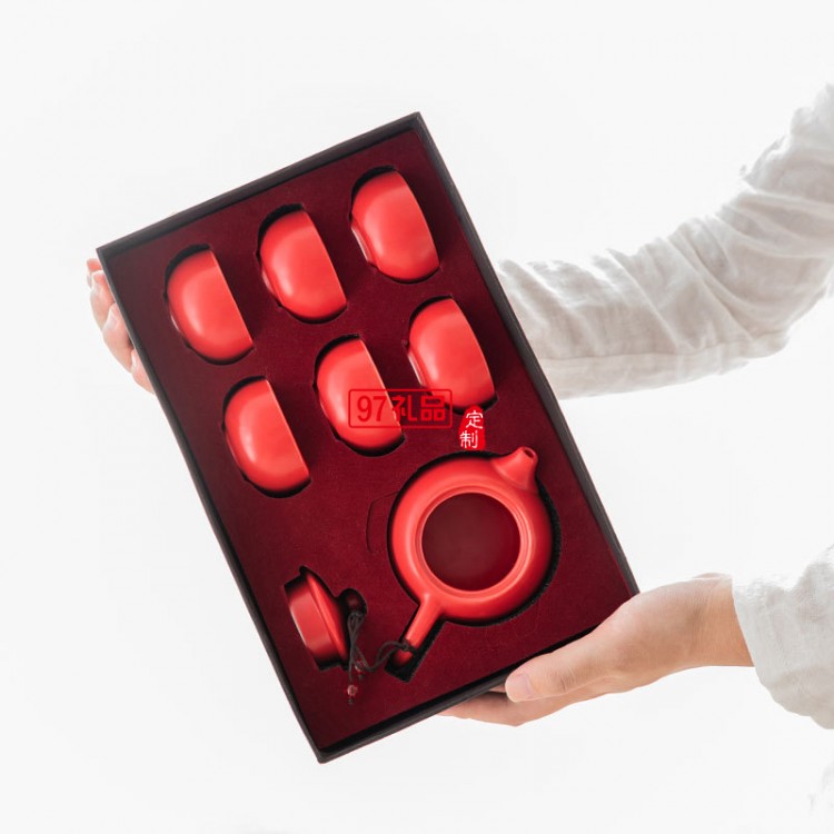喜慶啞光紅色陶瓷茶具批發(fā)定制