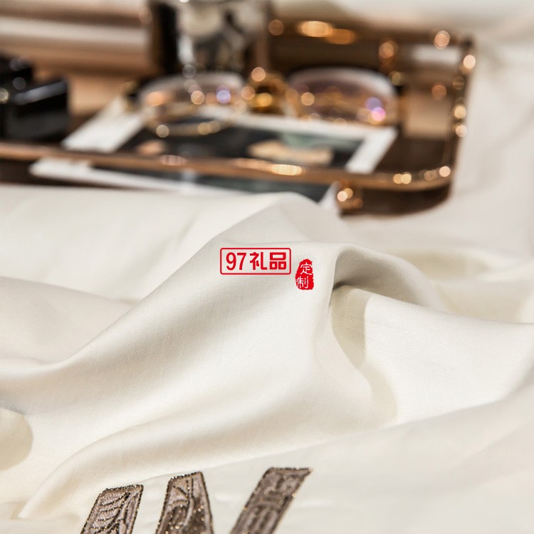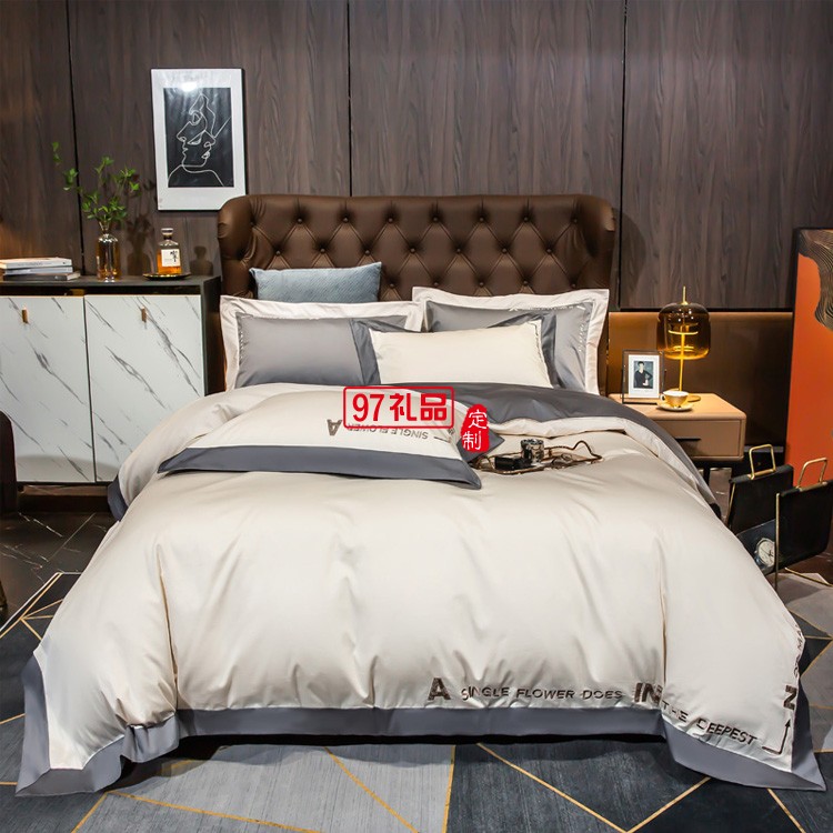 雅鹿 典雅風140支全棉輕奢刺繡套件 高支高密純棉套件 雙版拼色新疆