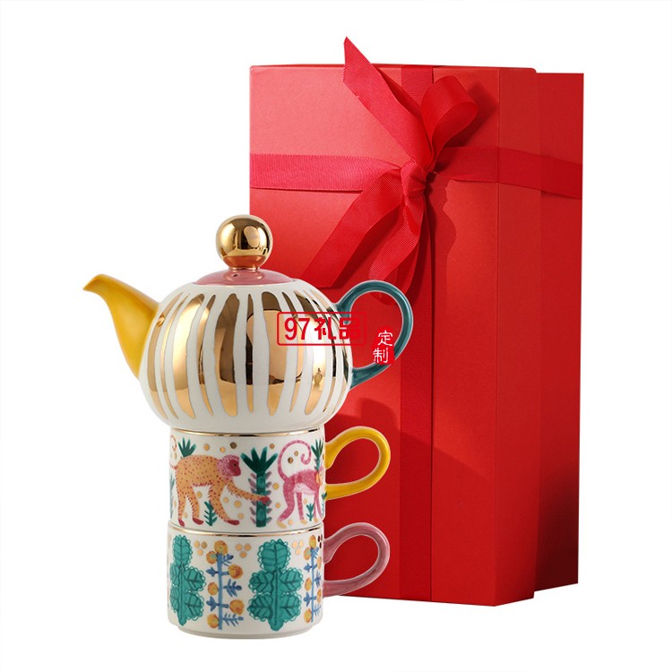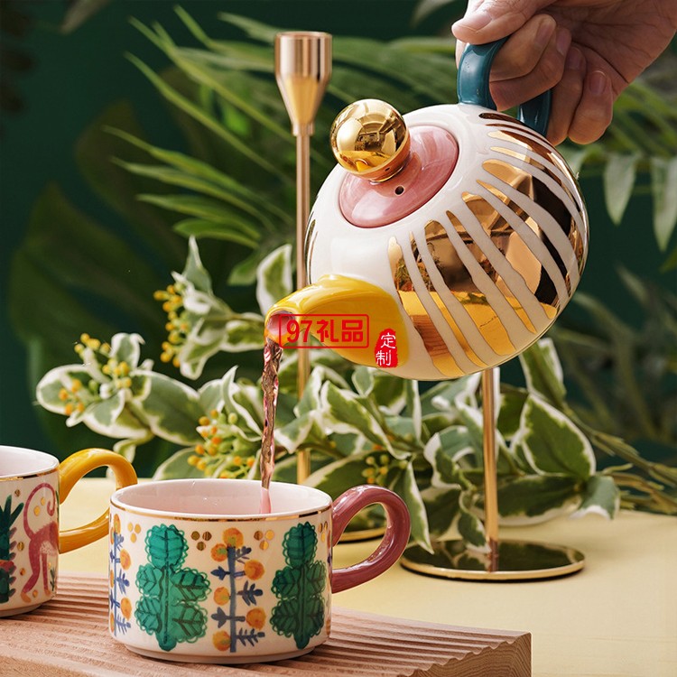 英式茶壺套裝田園風ins輕奢水具手繪一壺二杯咖啡杯壺禮盒禮品
