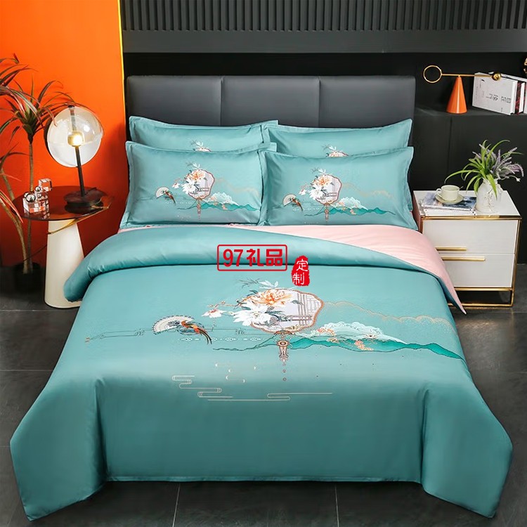 啄木鳥家紡水洗真絲印花四件套ZMN-HQYX-02定制公司廣告禮品