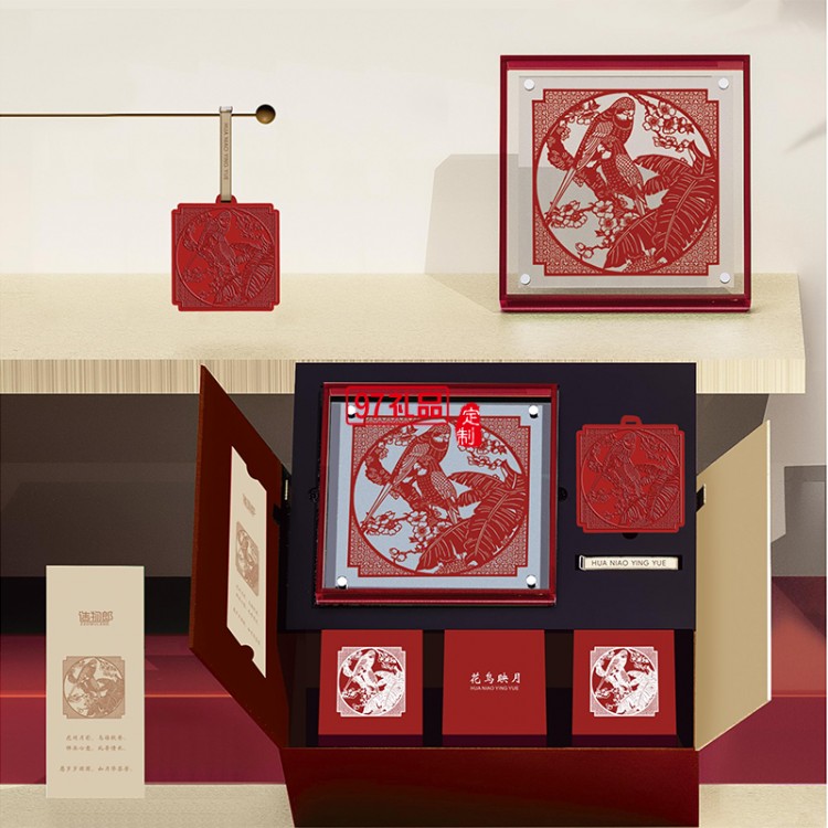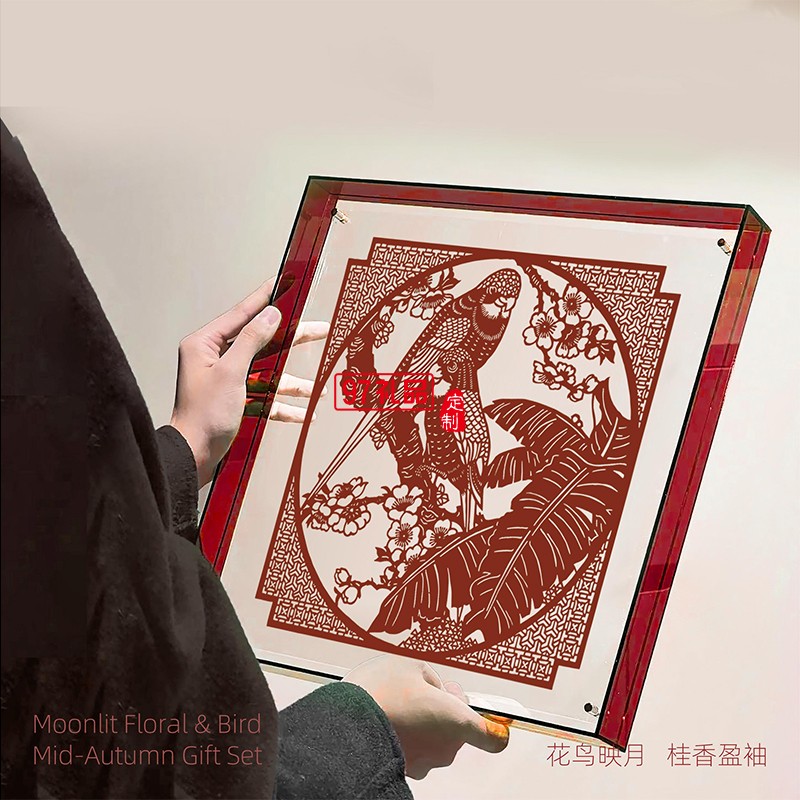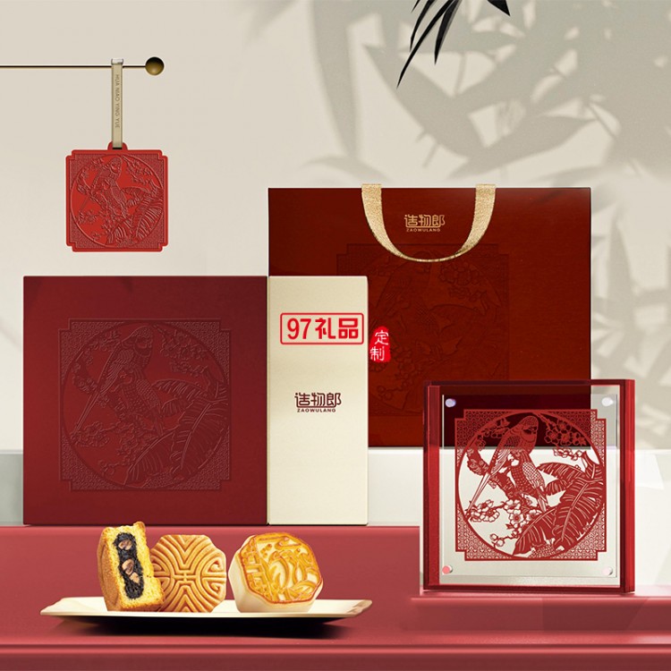 花鳥映月細紋刻紙中秋新款月餅禮盒裝企業團購定制logo商務伴手禮