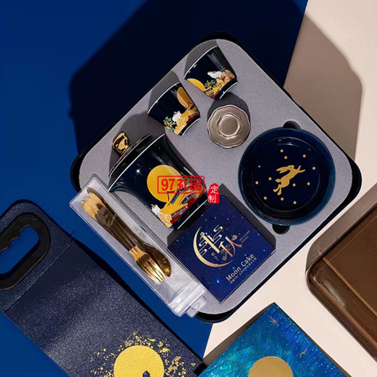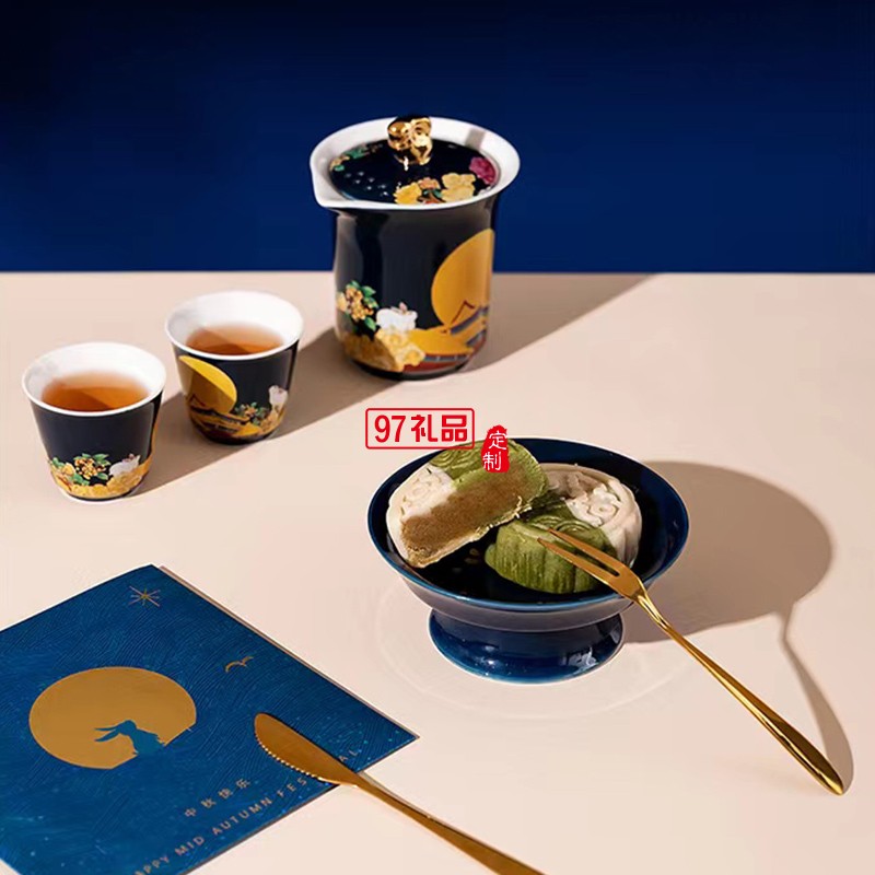 中秋桂月團(tuán)圓?國風(fēng)陶瓷茶具套裝 手繪玉兔品茗杯壺 送禮盒裝