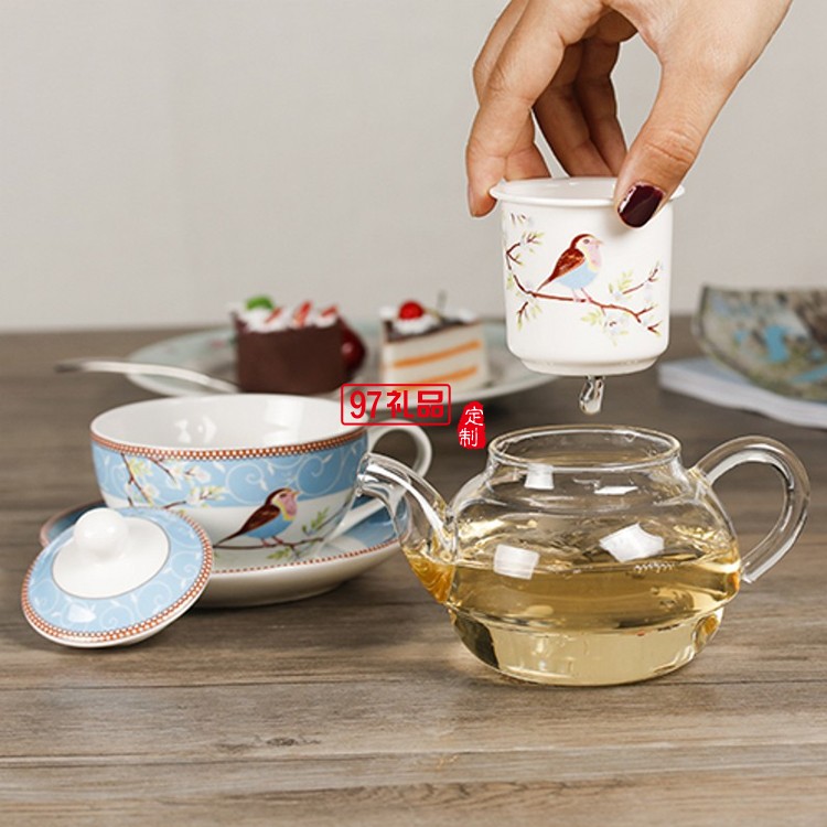 養生壺陶瓷花茶壺套裝 耐熱玻璃茶具泡茶壺定制公司廣告禮品