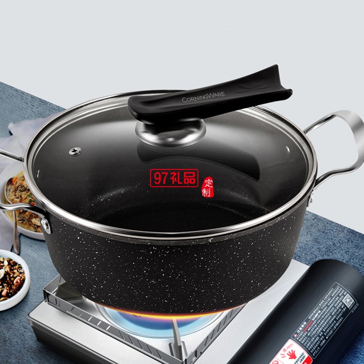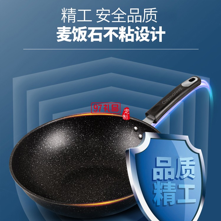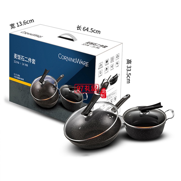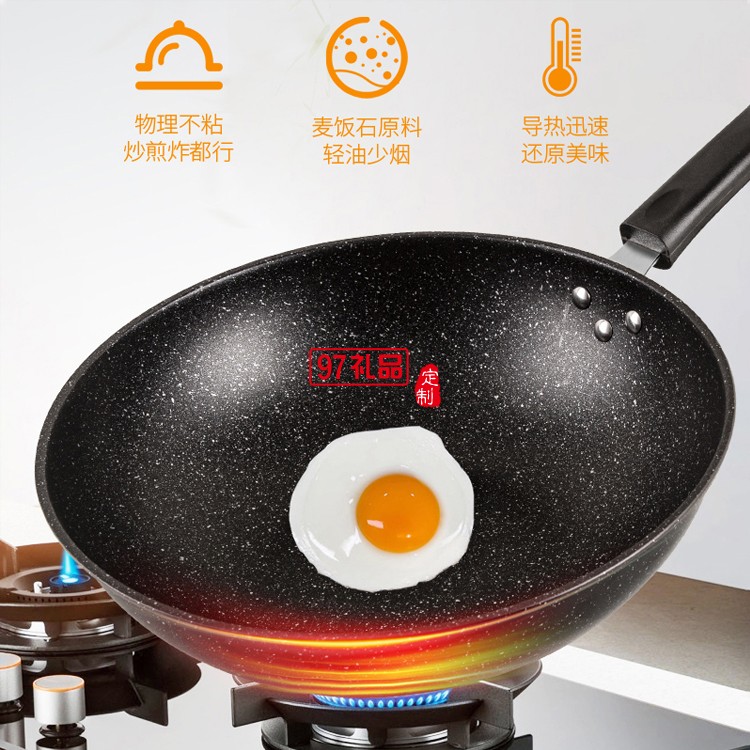 麥飯石二件套不粘鍋炒鍋炒菜鍋電磁煤氣爐定制公司廣告禮品