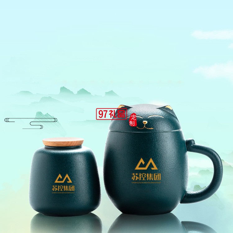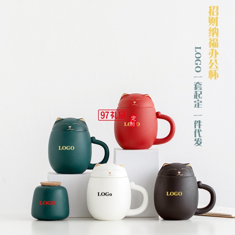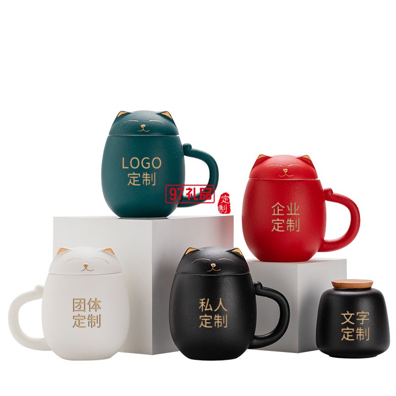 招財貓陶瓷馬克杯創意茶杯帶蓋辦公室泡茶杯子過濾杯卡通端午禮品